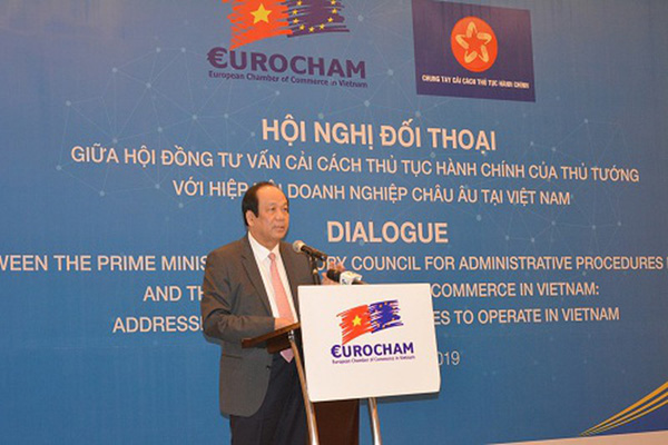 Chiều 12/12, Bộ trưởng, Chủ nhiệm Văn phòng Chính phủ Mai Tiến Dũng chủ trì Hội nghị đối thoại giữa Hội đồng Tư vấn cải cách thủ tục hành chính (TTHC) của Thủ tướng với Hiệp hội Doanh nghiệp Châu Âu (EuroCham) tại Việt Nam.