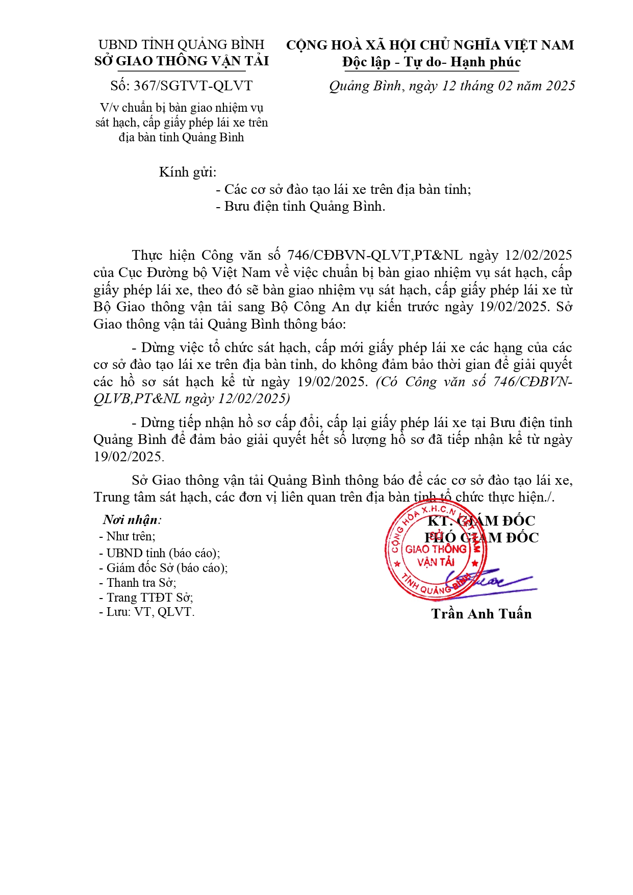 Chuẩn bị bàn giao nhiệm vụ sát hạch, cấp giấy phép lái xe trên địa bàn tỉnh Quảng Bình