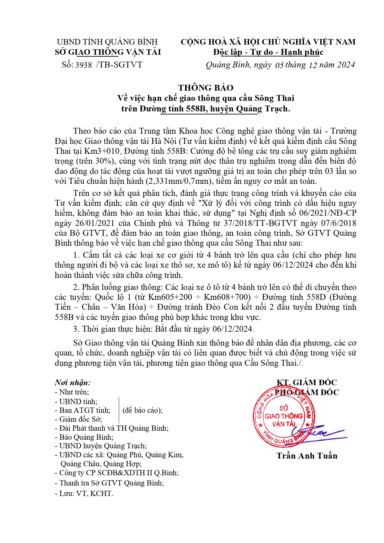 Cấm xe cơ giới 4 bánh trở lên qua cầu Sông Thai