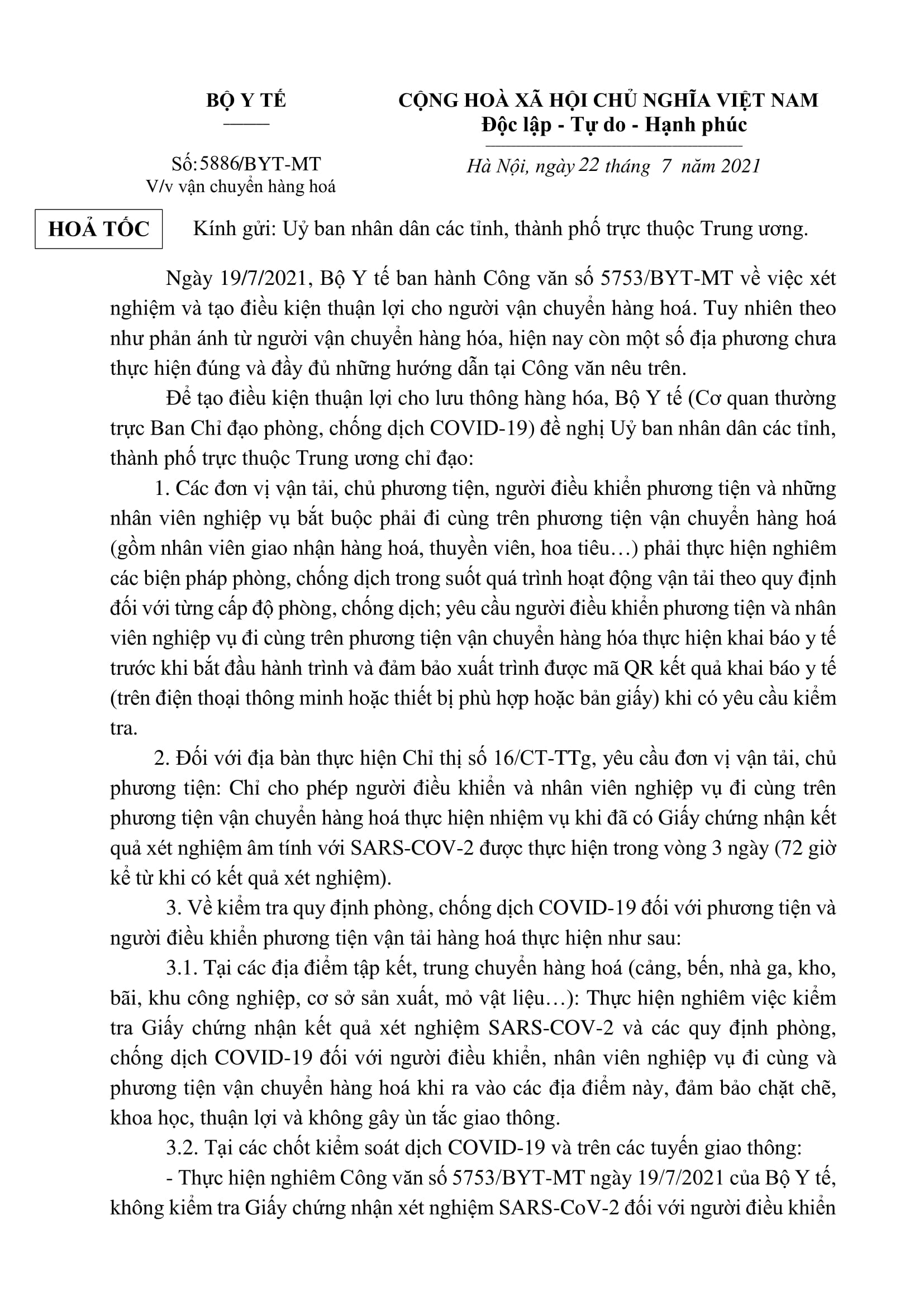 Thông báo thực hiện nghiêm công tác phòng, chống dịch Covid-19 đối với người trên phương tiện vận chuyển