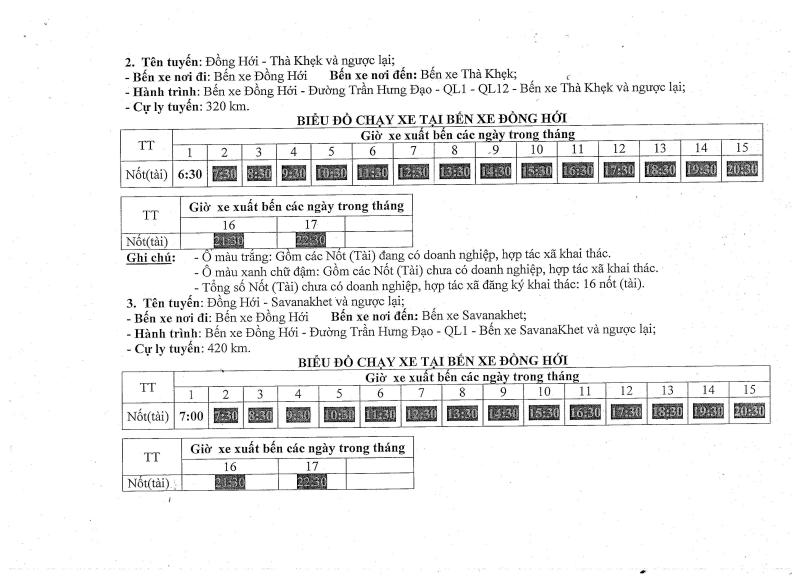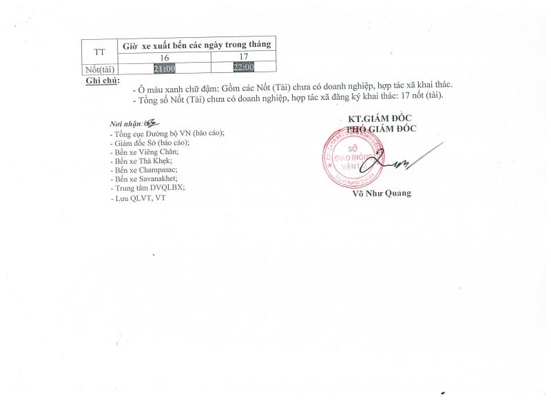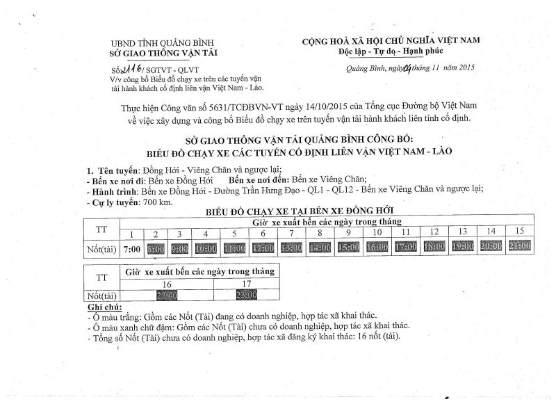 Thông báo Biểu đồ chạy xe trên các tuyến vận tải hành khách cố định liên vận Việt Nam - Lào