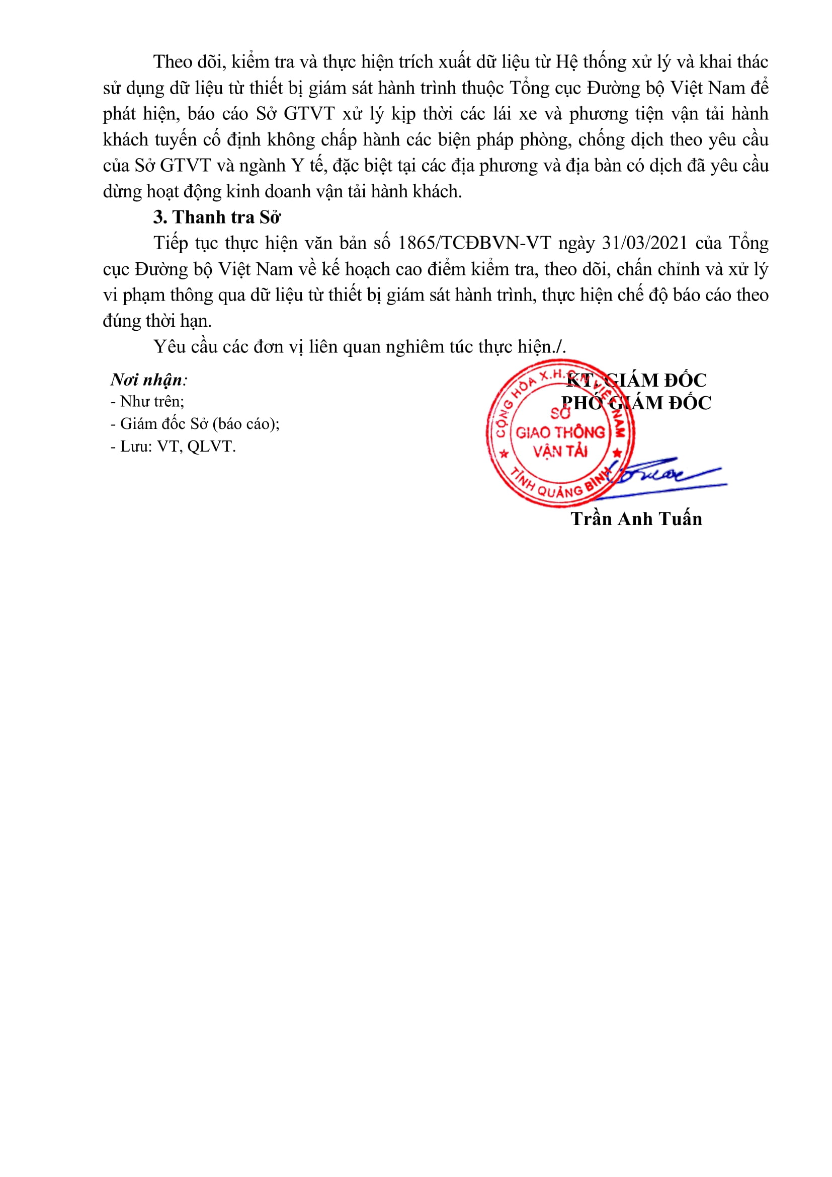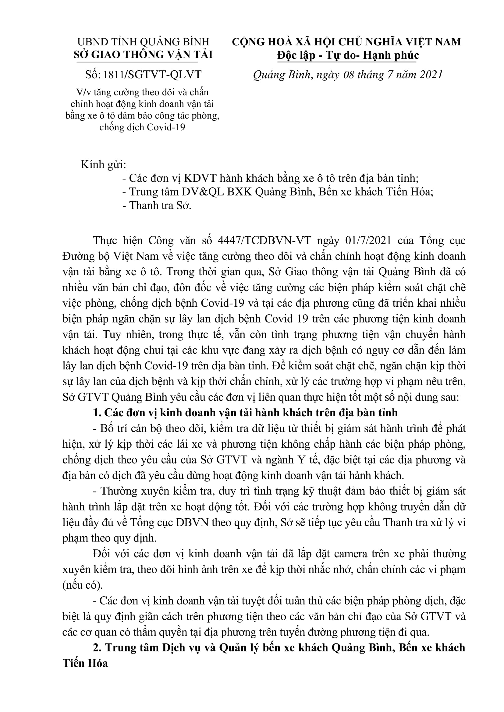 - Tăng cường các biện pháp kiểm soát chặt chẽ việc phòng, chống dịch bệnh Covid-19 trên các tuyến xe khách cố định liên tỉnh (29/06/2021)
