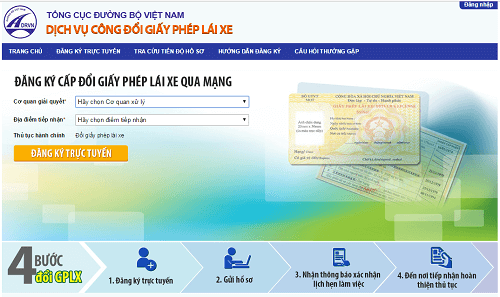 Hướng dẫn Đăng ký Đổi Giấy phép lái xe trực tuyến