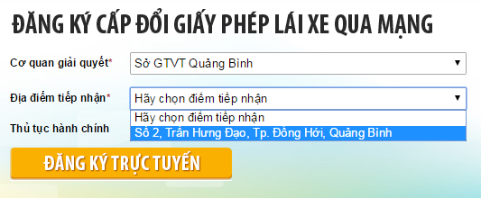 - Chọn Địa điểm tiếp nhận là “Số 2, Trần Hưng Đạo, Tp. Đồng Hới, Quảng Bình”'