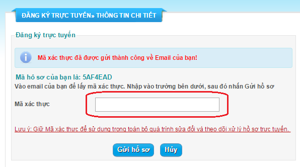 Bước 5: Hệ thống xác thực bạn đã đăng ký thành công hồ sơ.