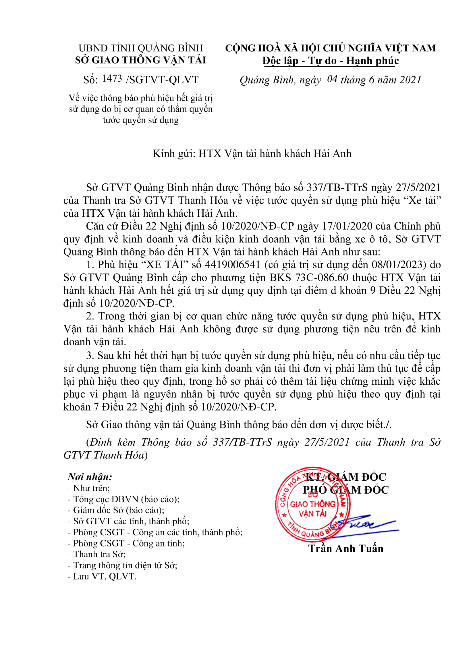 - Thông báo Danh sách phù hiệu xe ô tô hết giá trị sử dụng (27/05/2021)