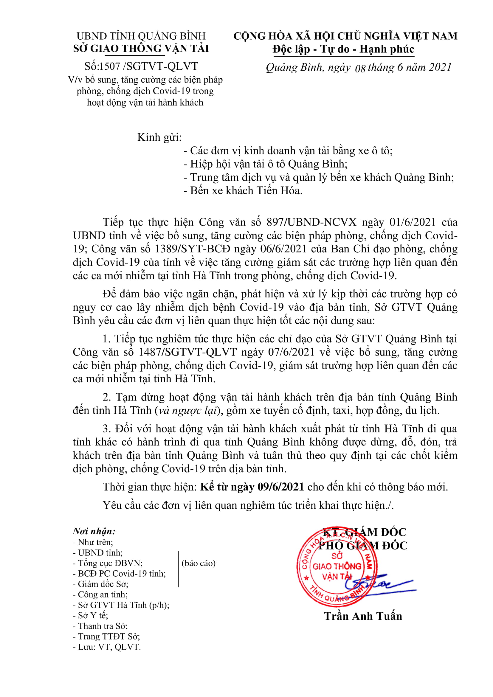 - Thông báo tiếp tục triển khai các biện pháp phòng chống dịch đối với hoạt động vận tải hàng hóa và hành khách (02/06/2021)