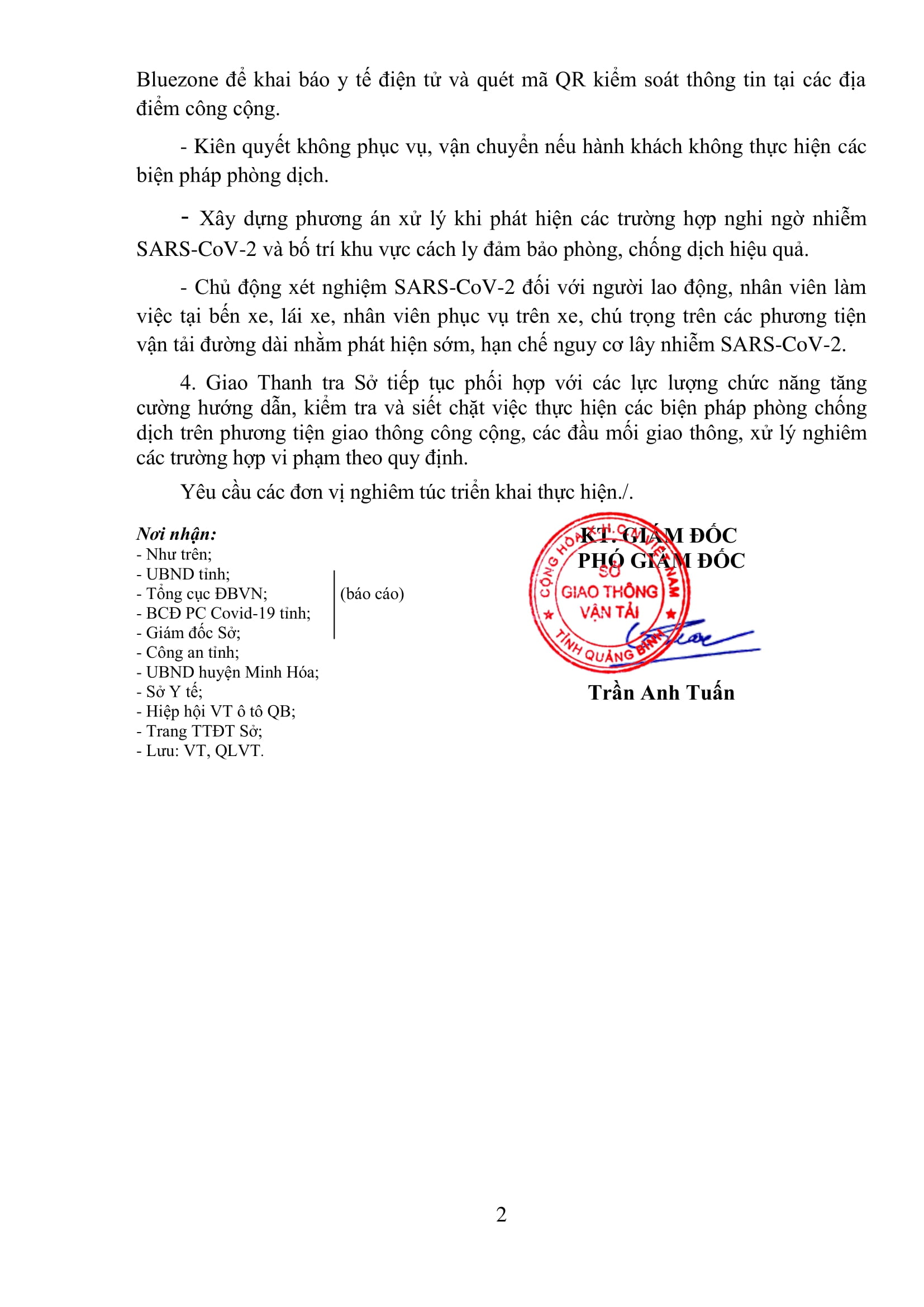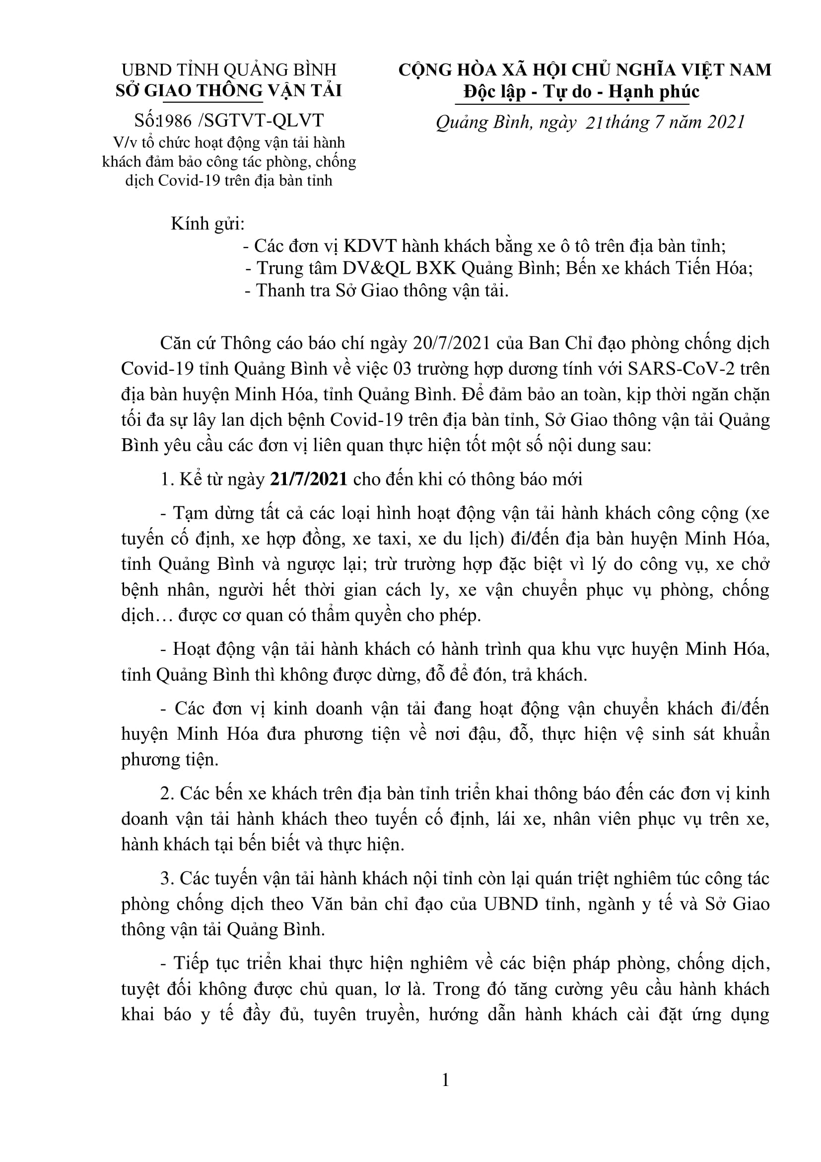 Thông báo dừng hoạt động vận tải hành khách đi/đến địa bàn huyện Minh Hóa, tỉnh Quảng Bình