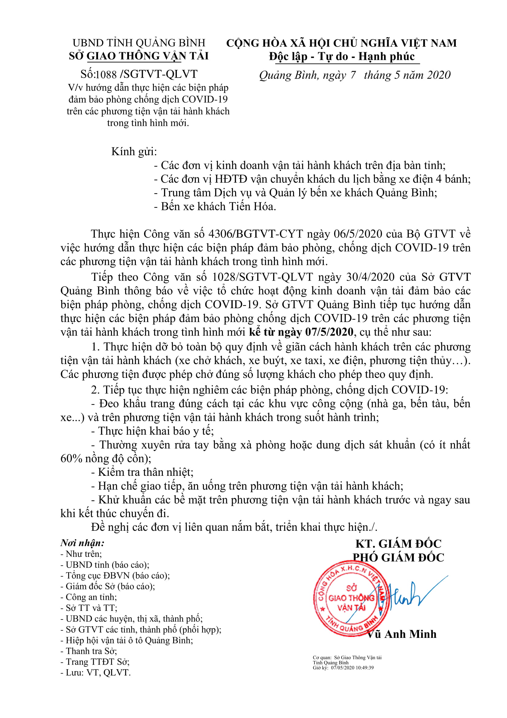 Hướng dẫn thực hiện các biện pháp đảm bảo phòng chống dịch COVID-19 trên các phương tiện vận tải hành khách trong tình hình mới