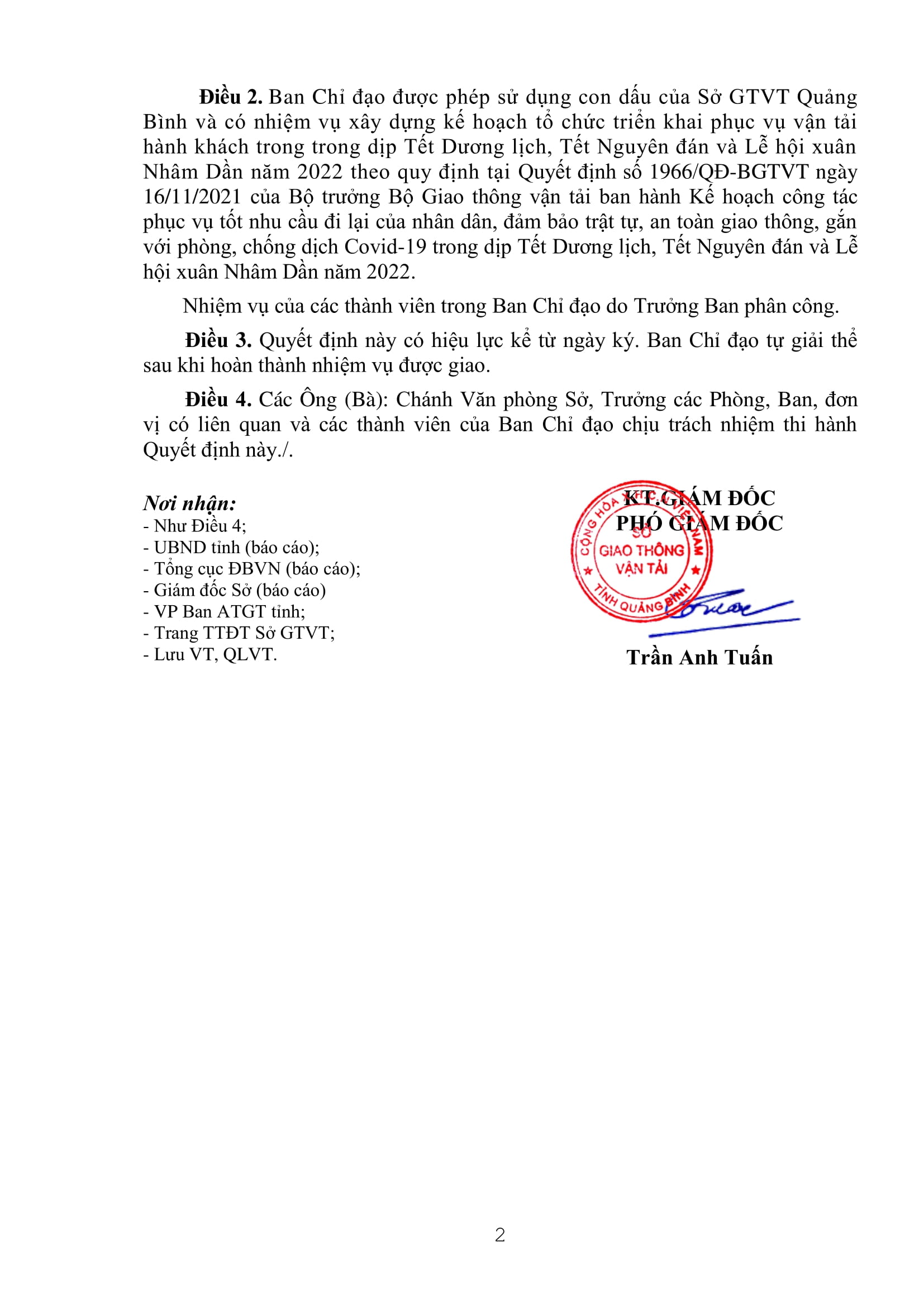 Quyết định thành lập Ban Chỉ đạo vận tải hành khách trong dịp Tết Dương lịch, Tết Nguyên đán và mùa Lễ hội xuân Nhâm Dần năm 2022