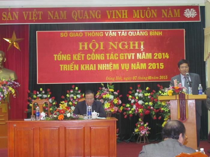 Chiều ngày 07/01/2015, Sở Giao thông vận tải Quảng Bình tổ chức Hội nghị tổng kết công tác GTVT năm 2014 và triển khai nhiệm vụ năm 2015. Đồng chí Trần Văn Tuân - UVTVTU, Phó Chủ tịch UBND tỉnh đến dự và chỉ đạo hội nghị. Tham dự hội nghị còn có đồng chí Võ Minh Doang, UVTT HĐND tỉnh, đại diện Lãnh đạo ĐU Khối Các cơ quan tỉnh; các Sở, ban, ngành; UBND cấp huyện và các đơn vị có liên quan.