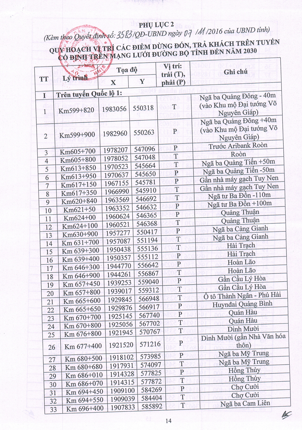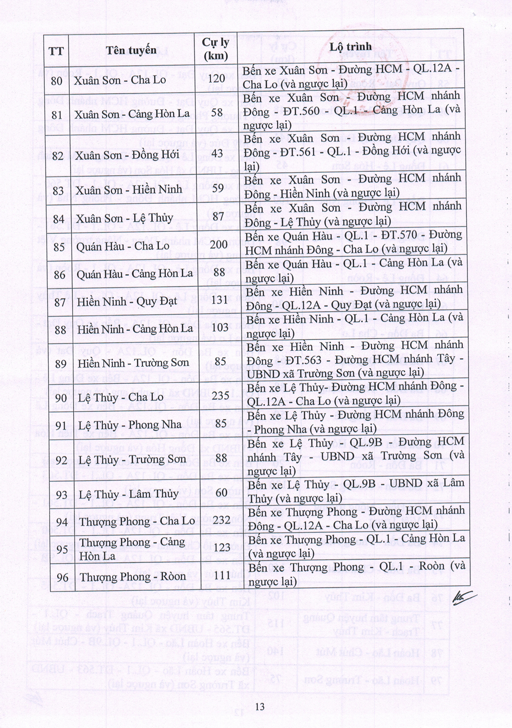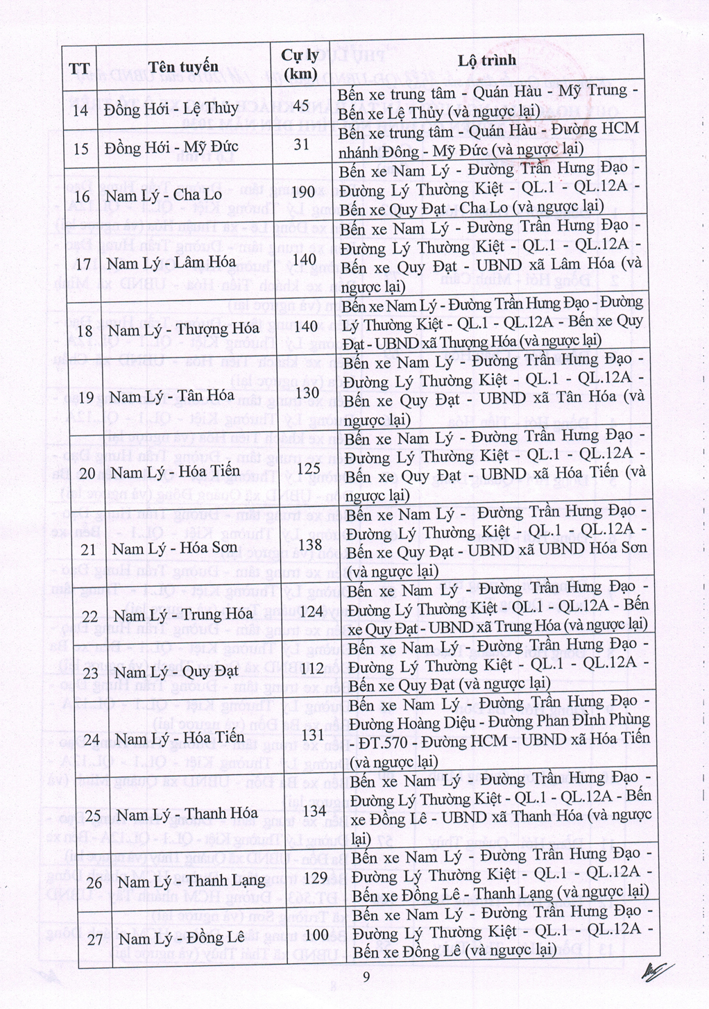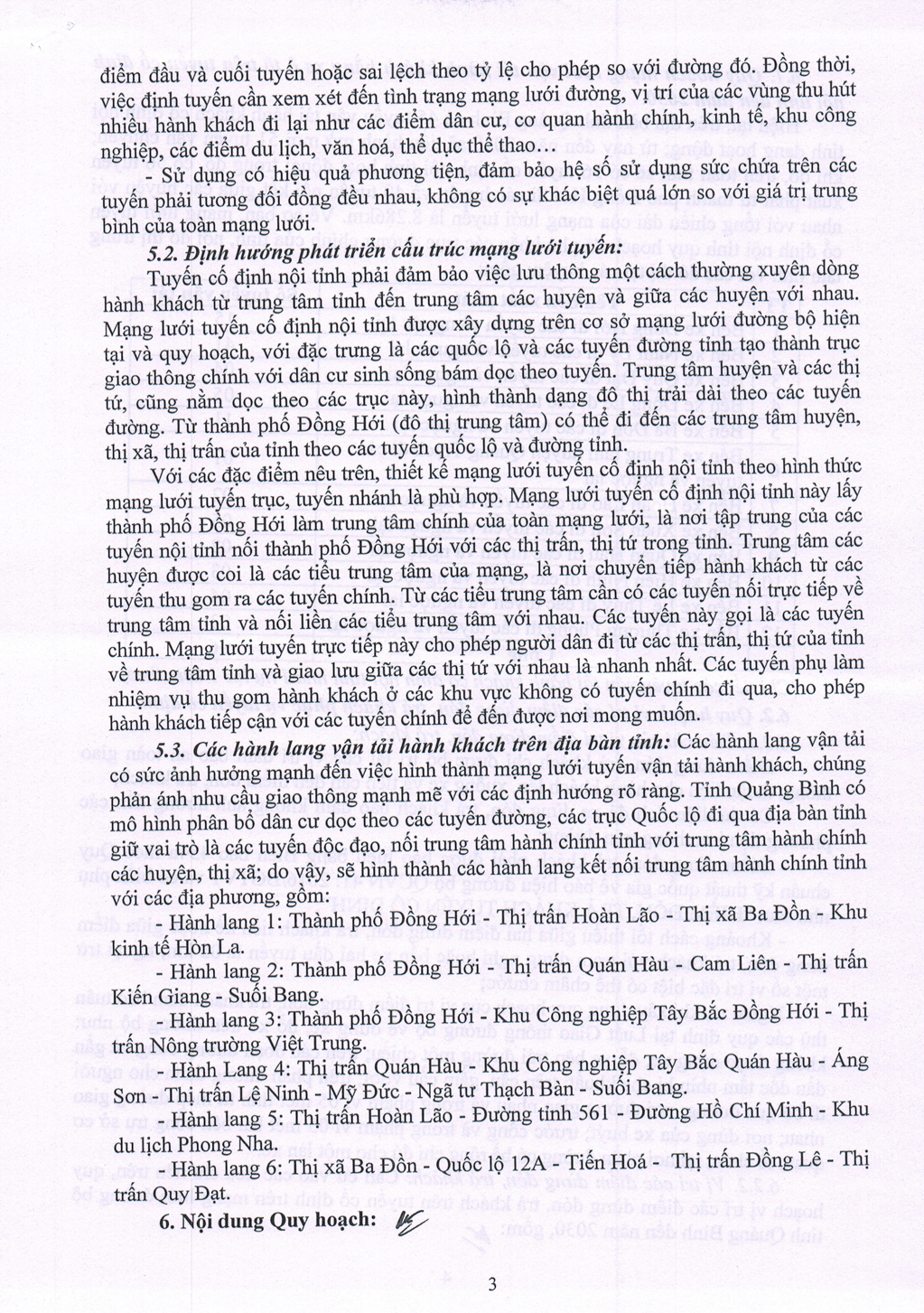Thông báo Quyết định phê duyệt Quy hoạch mạng lưới vận tải hành khách bằng xe ô tô trên tuyến cố định nội tỉnh; vị trí các điểm dừng đón, trả khách trên tuyến cố định trên mạng lưới đường bộ tỉnh Quảng Bình đến năm 2030.