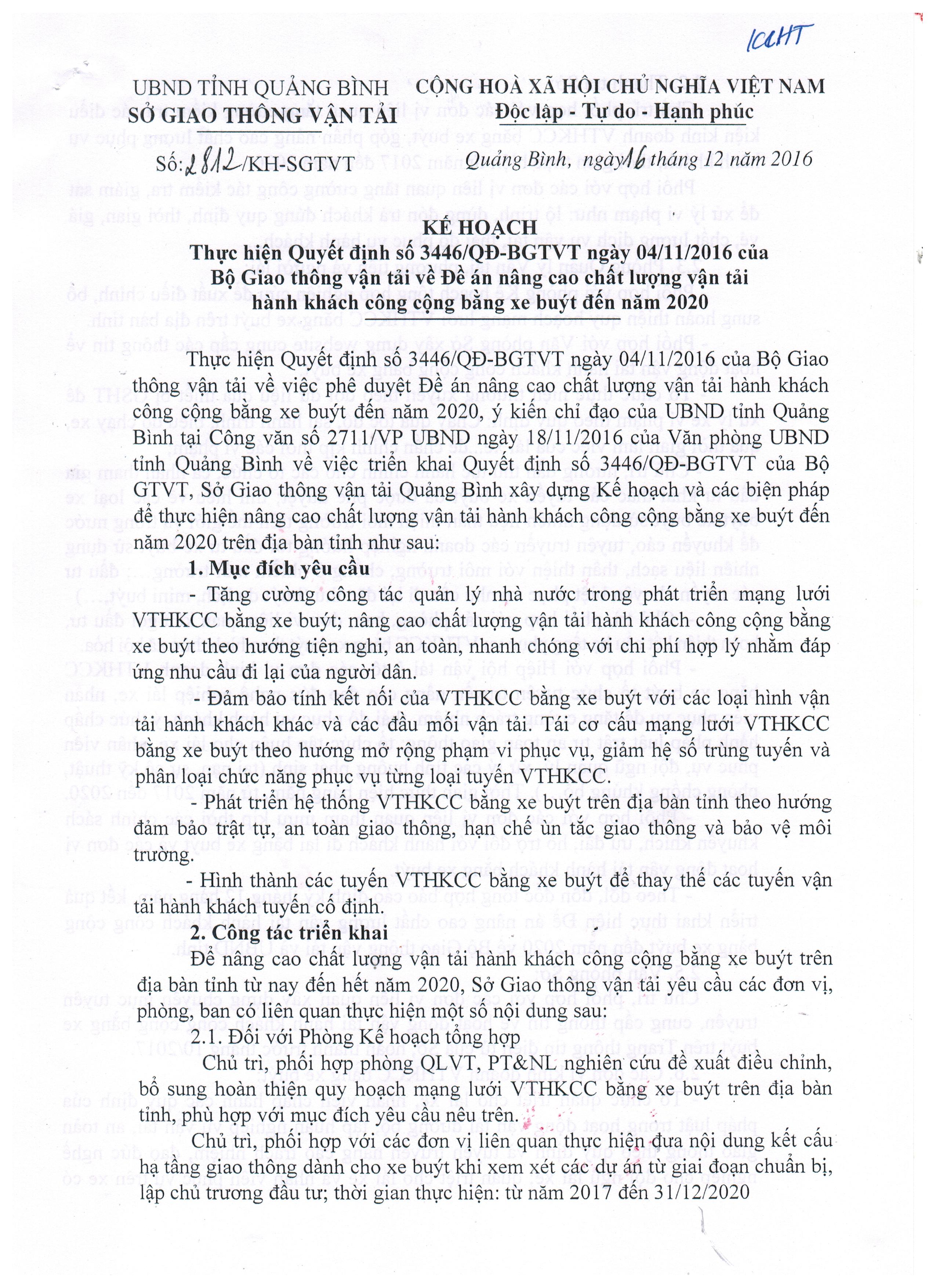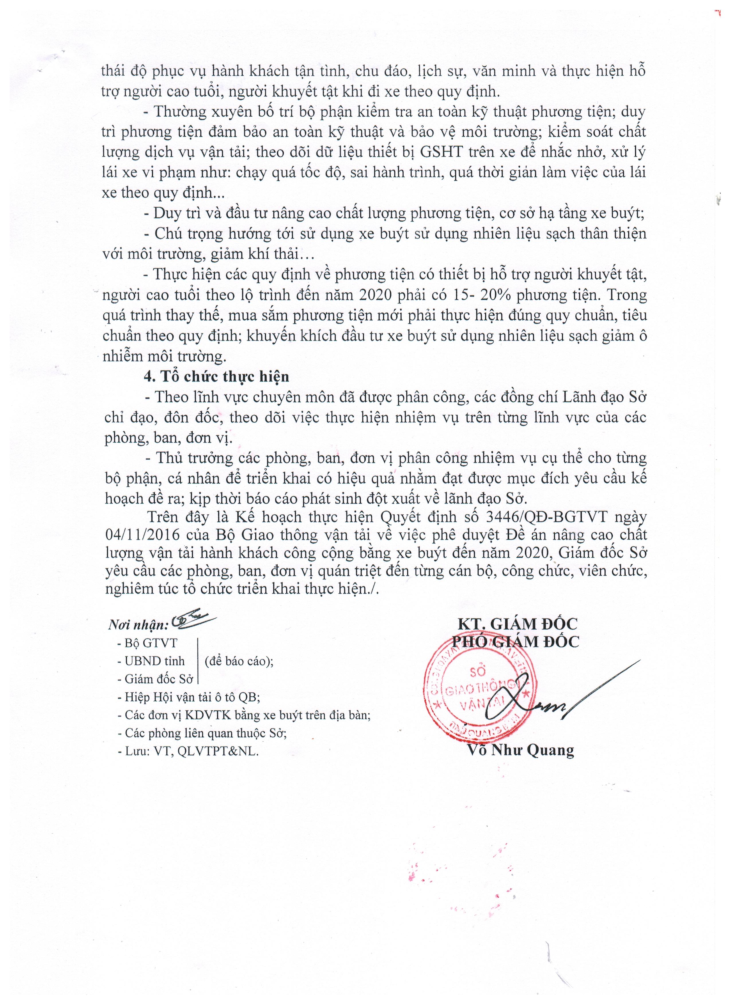 Kế hoạch thực hiện Quyết định số 3446/QĐ-BGTVT ngày 04/11/2016 của Bộ Giao thông vận tải về Đề án nâng cao chất lượng vận tải hành khách công cộng bằng xe buýt đến năm 2020
