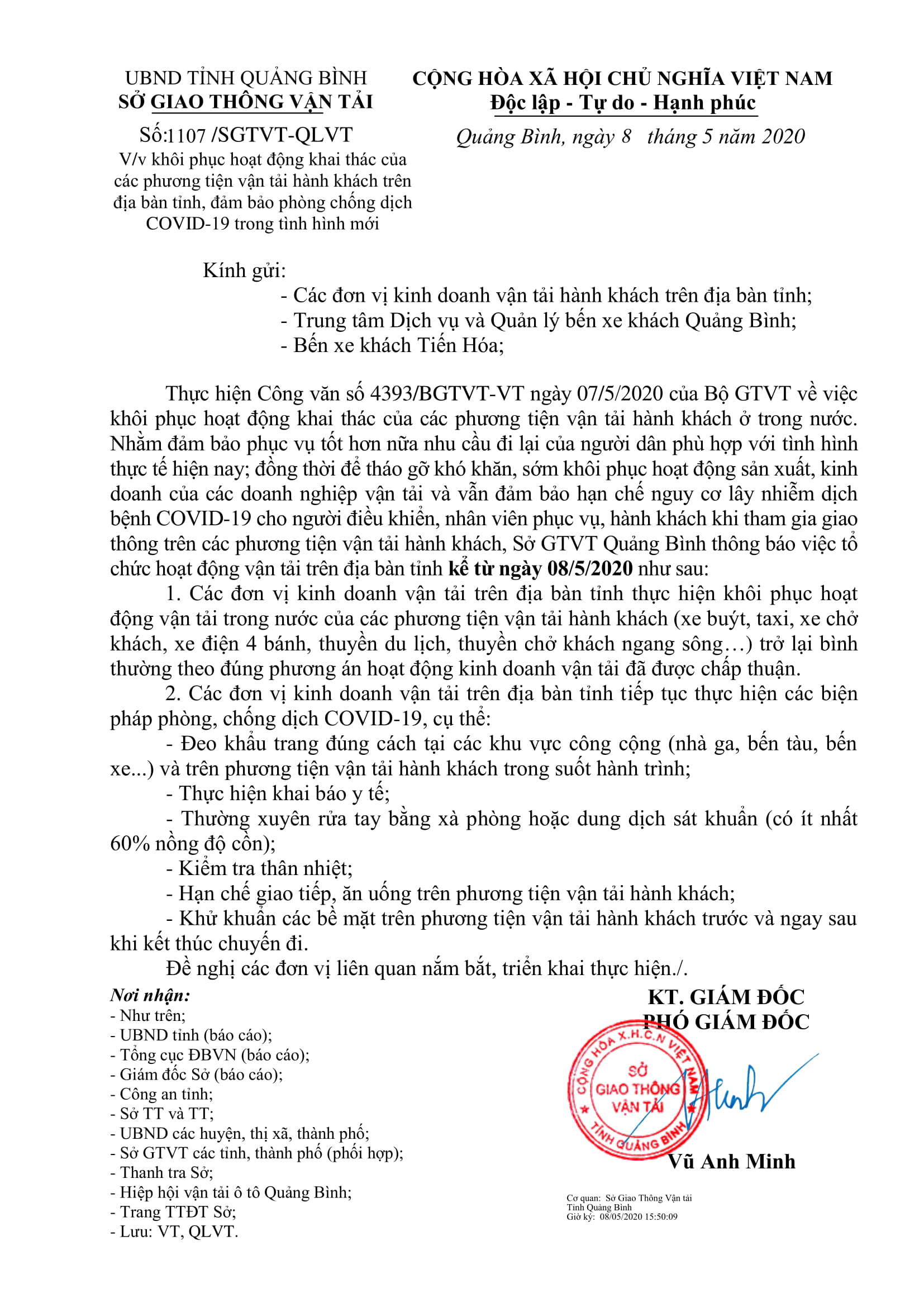 - Hướng dẫn thực hiện các biện pháp đảm bảo phòng chống dịch COVID-19 trên các phương tiện vận tải hành khách trong tình hình mới (14/05/2020)
