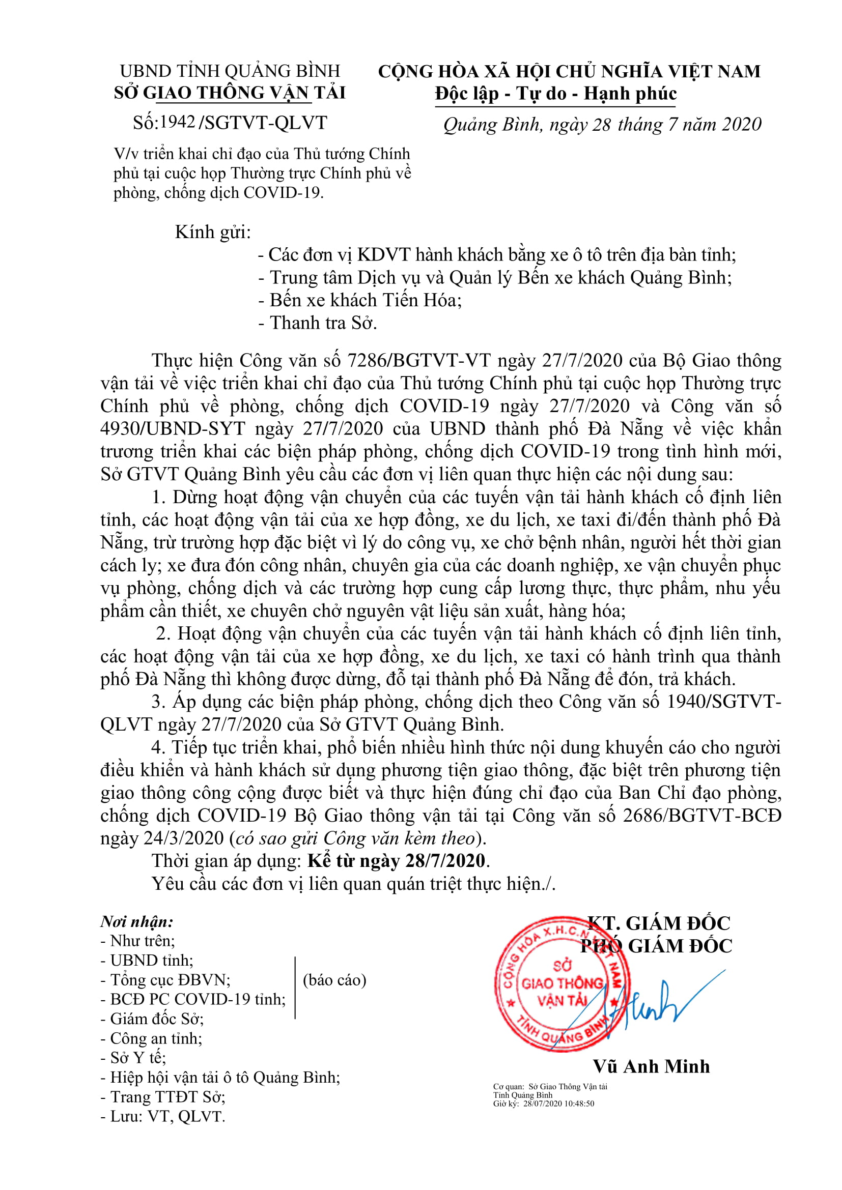Triển khai chỉ đạo của Thủ tướng Chính phủ tại cuộc họp Thường trực Chính phủ về phòng, chống dịch COVID-19 ngày 27/7/2020