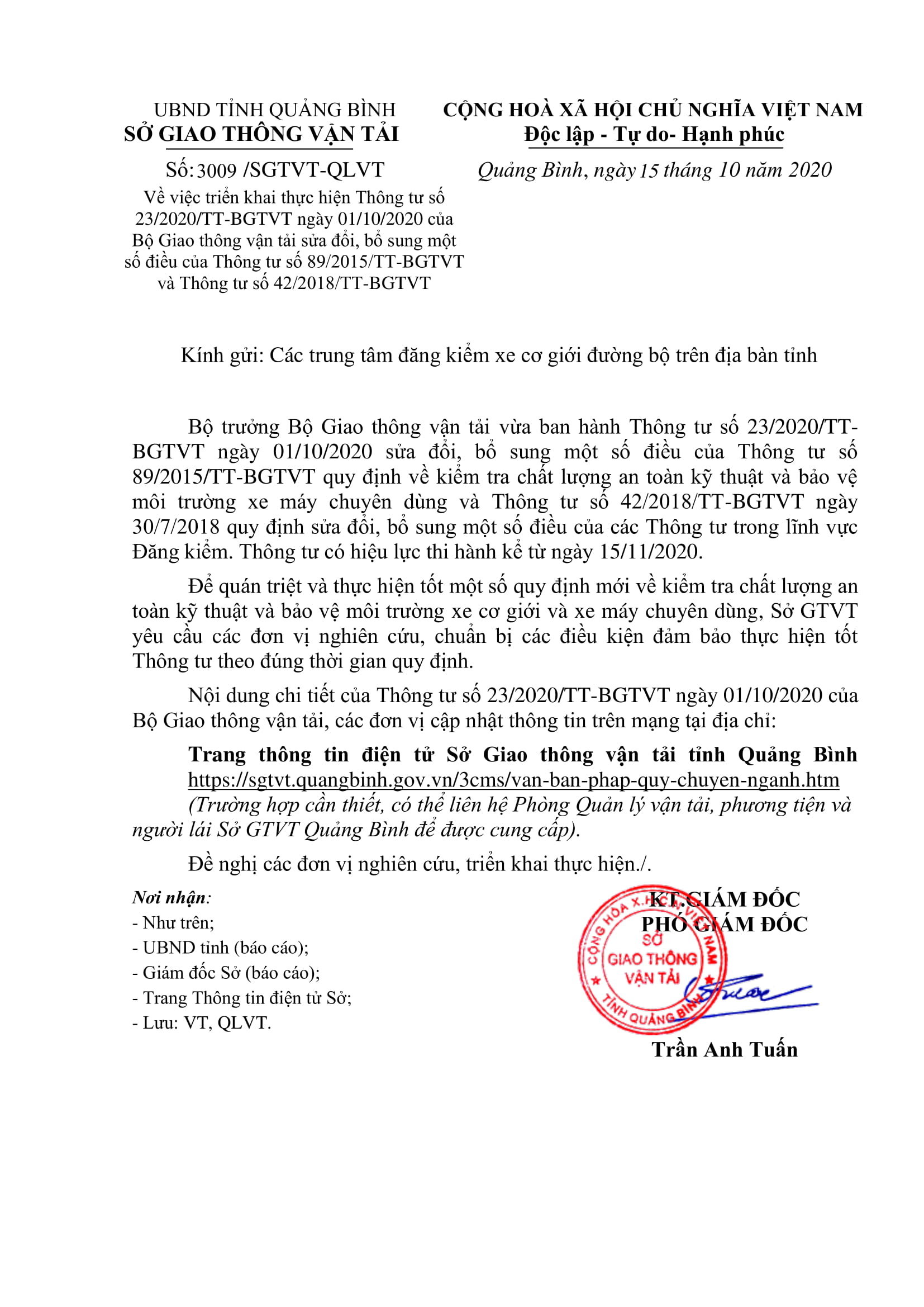 - Thông báo việc tổ chức hoạt động kinh doanh vận tải, tổ chức đào tạo lái xe cơ giới đường bộ trên địa bàn tỉnh (03/08/2020)