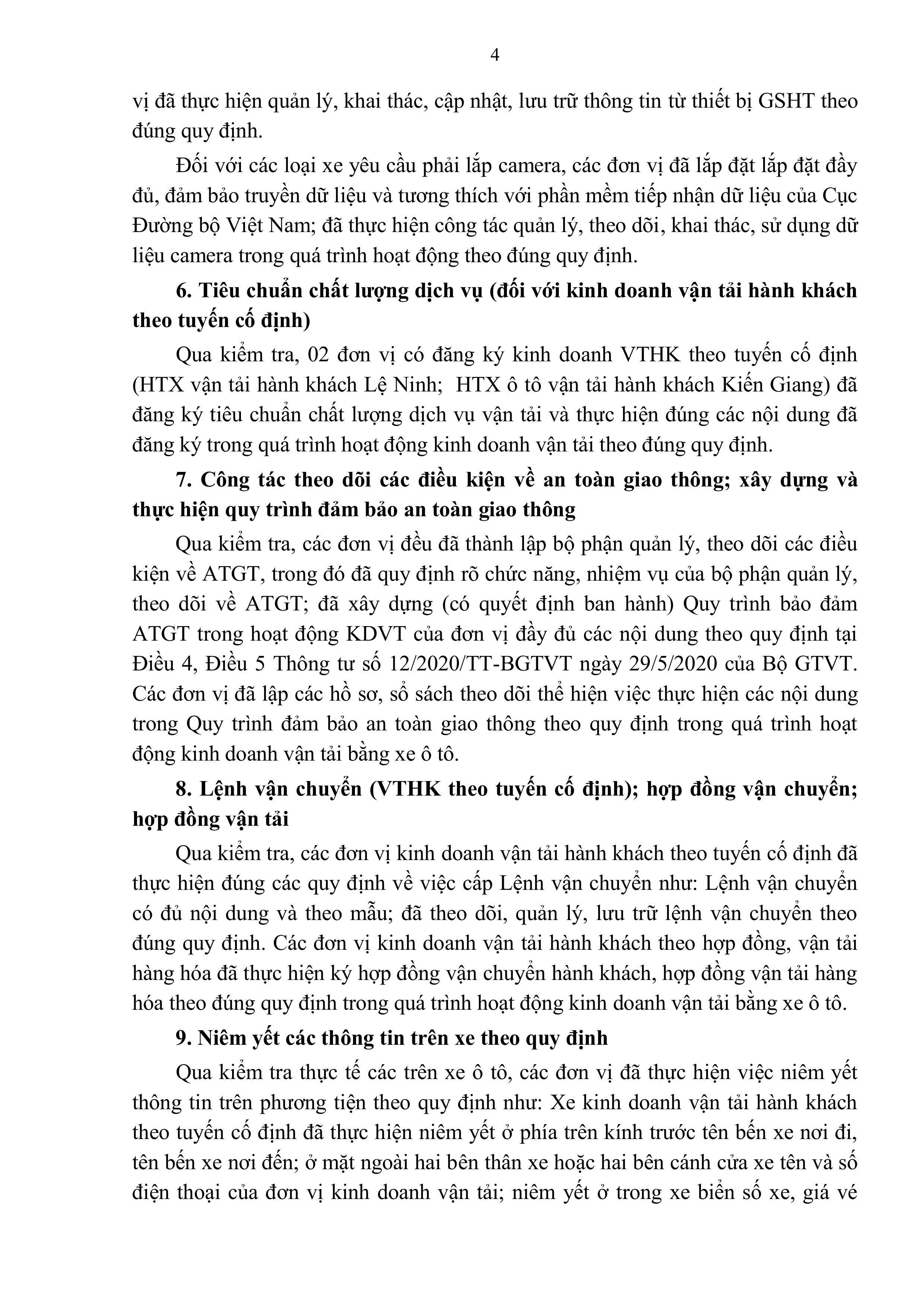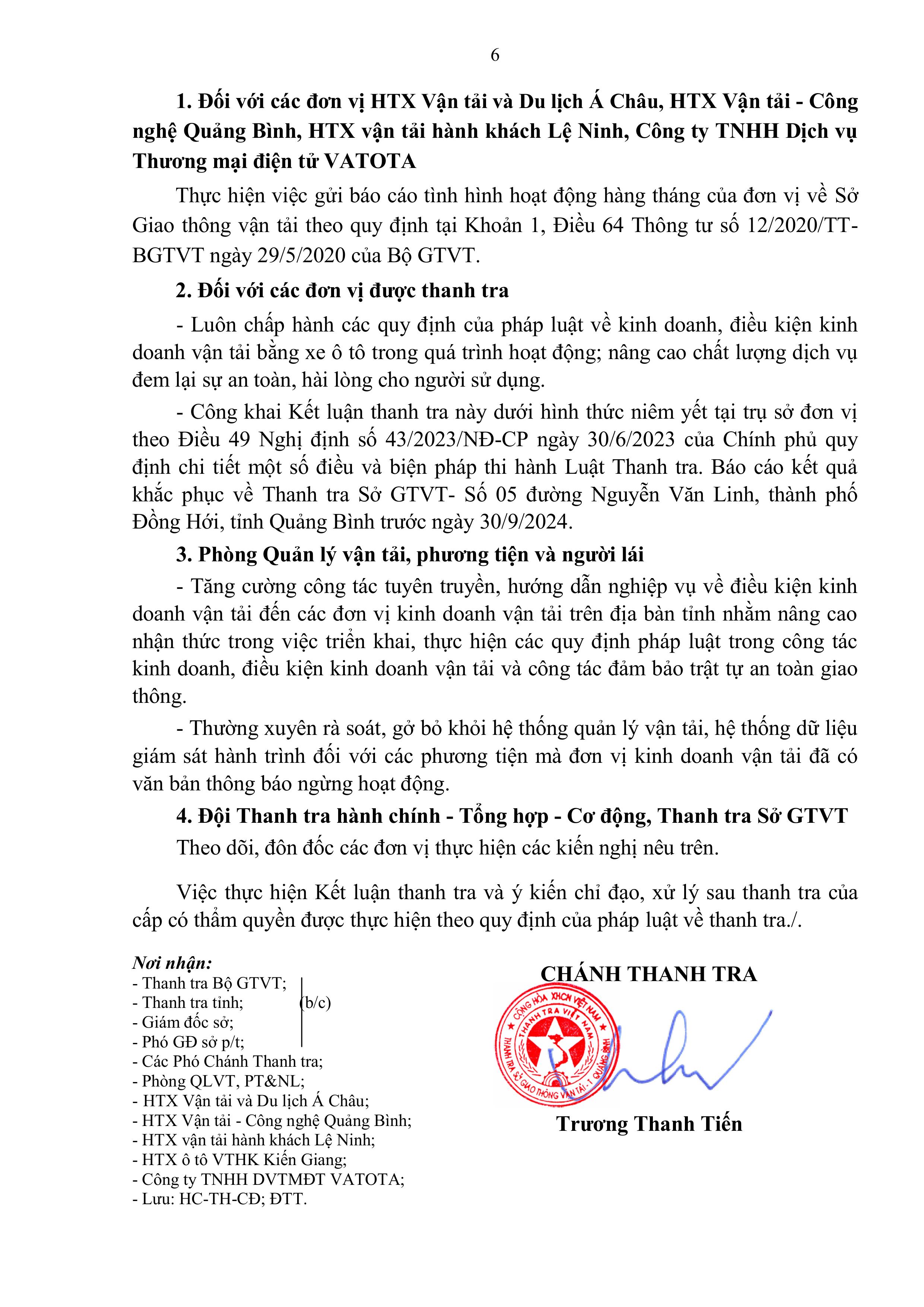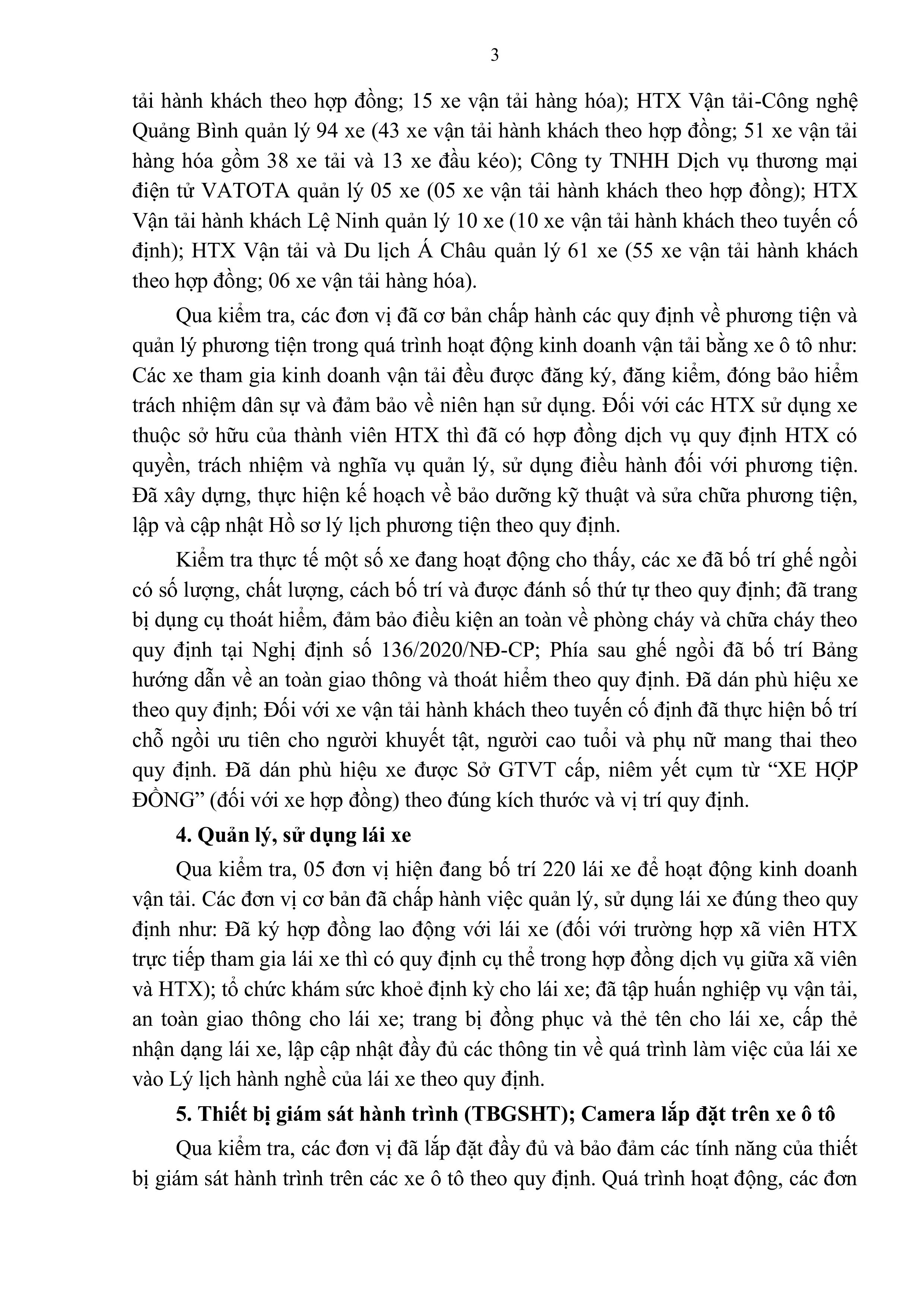 Kết luận thanh tra về việc chấp hành các quy định pháp luật về kinh doanh, điều kiện kinh doanh vận tải bằng xe ô tô tại một số đơn vị trên địa bàn tỉnh Quảng Bình