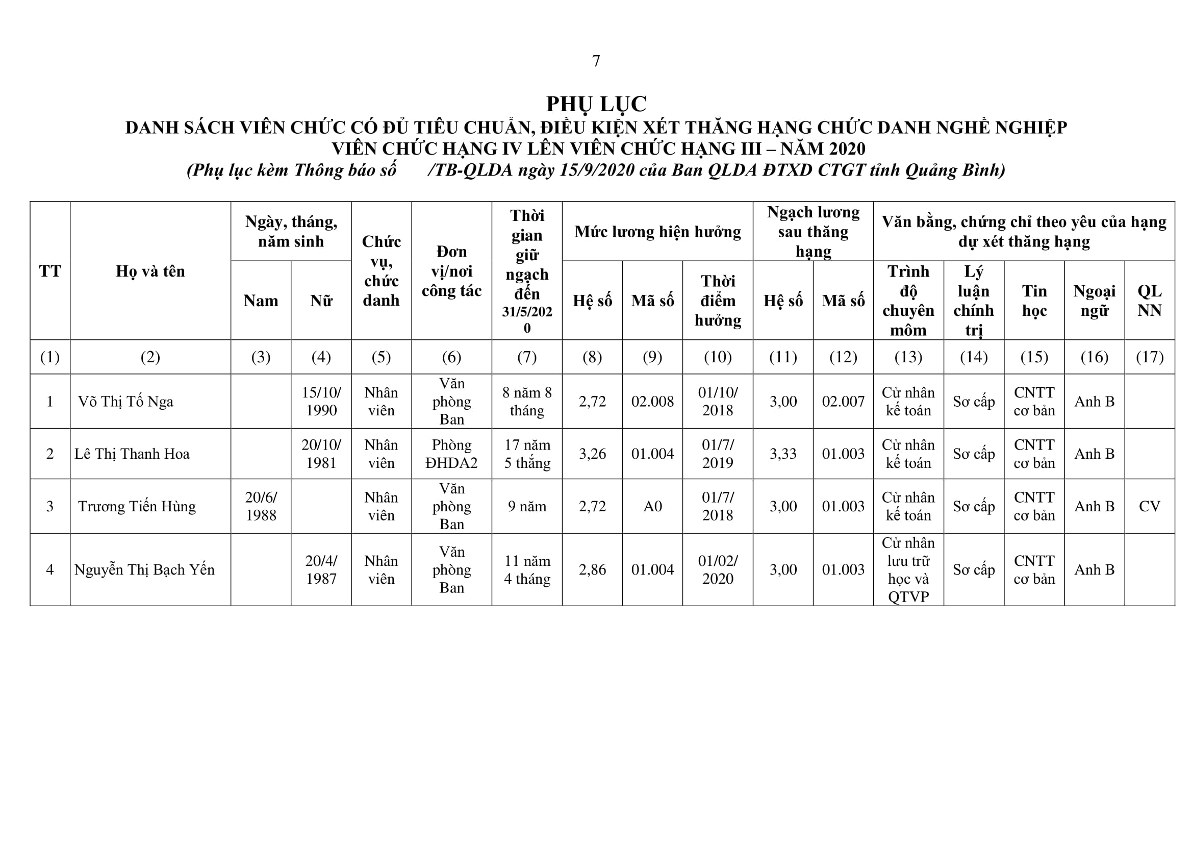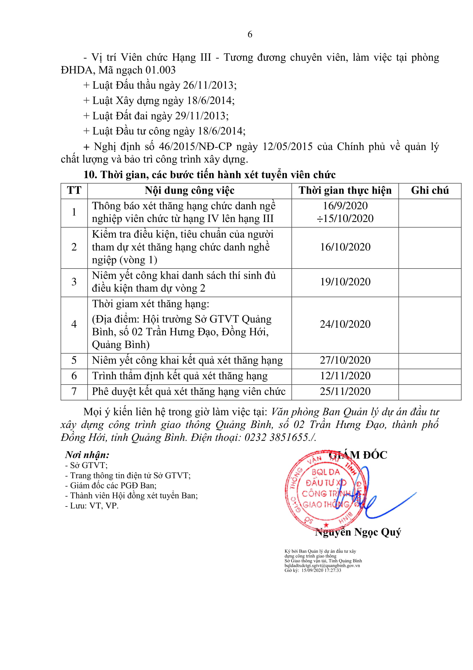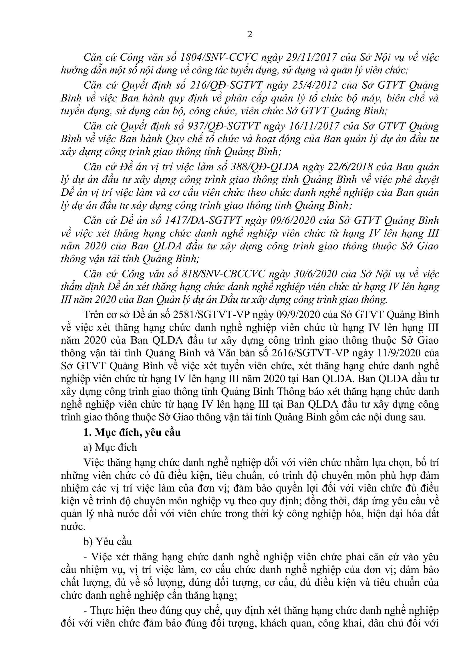 Thông báo Xét thăng hạng chức danh nghề nghiệp đối với viên chức từ hạng IV lên hạng III của Ban QLDA Đầu tư xây dựng công trình giao thông tỉnh Quảng Bình năm 2020