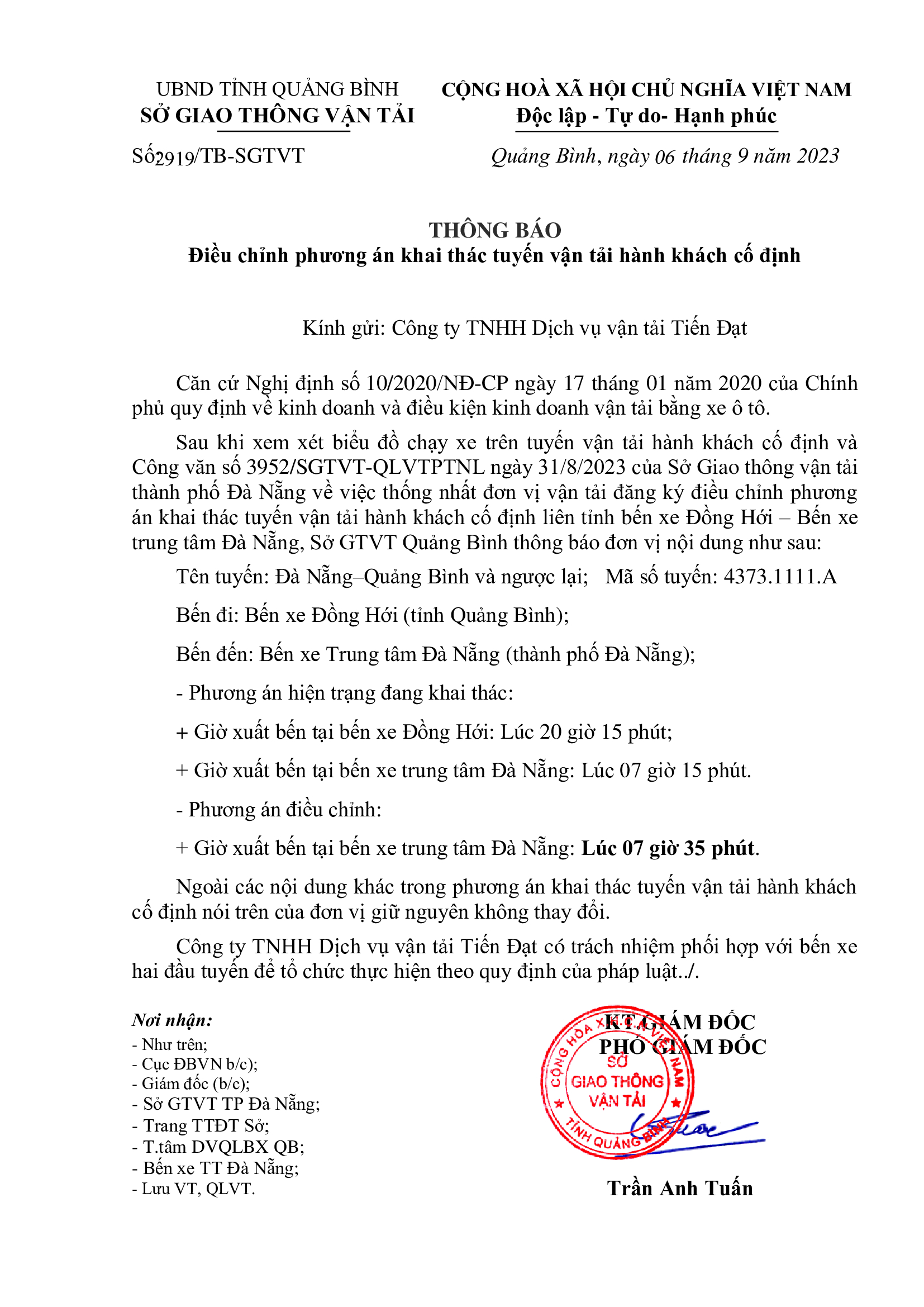 Đơn vị vận tải đăng ký khai thác tuyến vận tải hành khách cố định