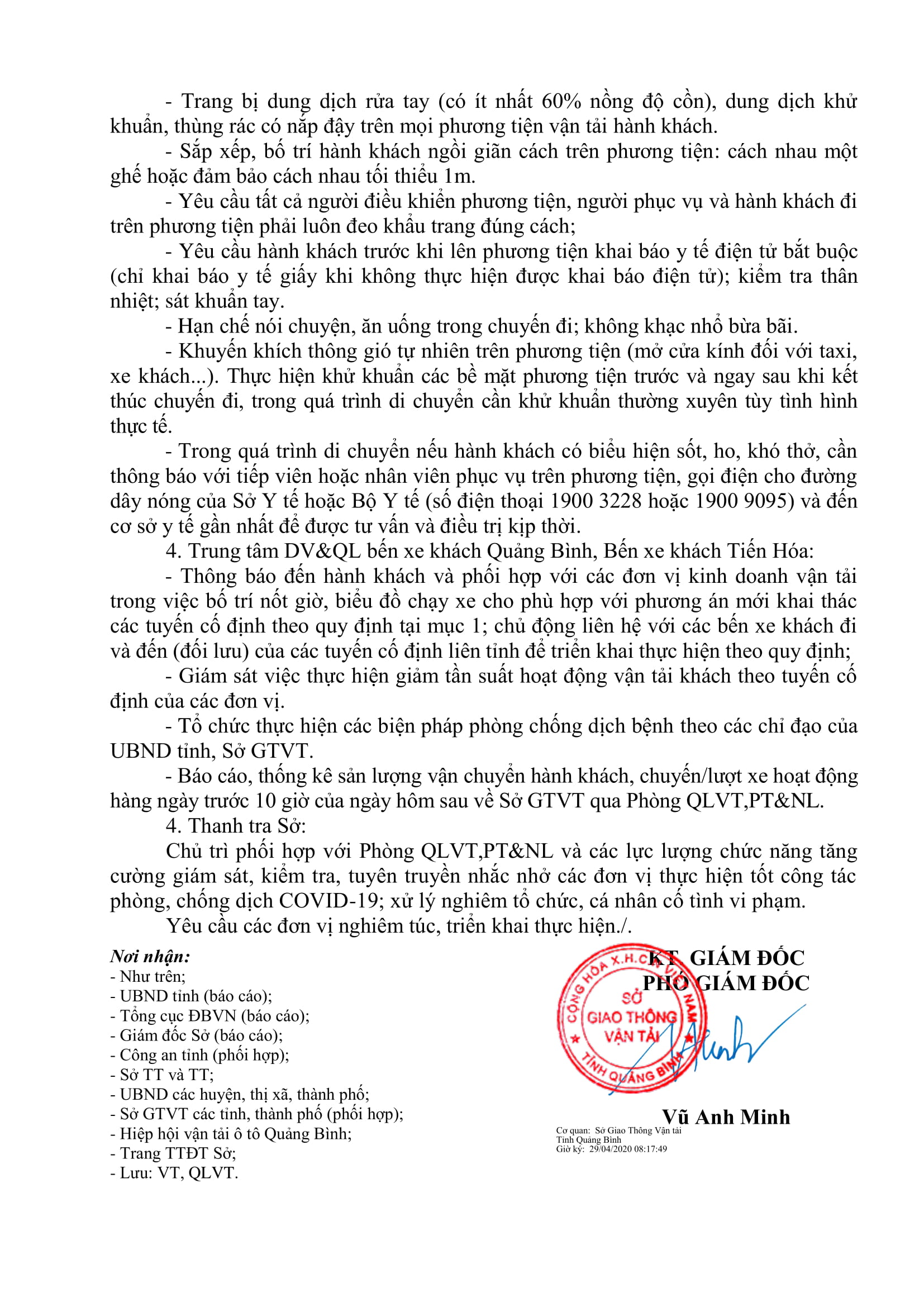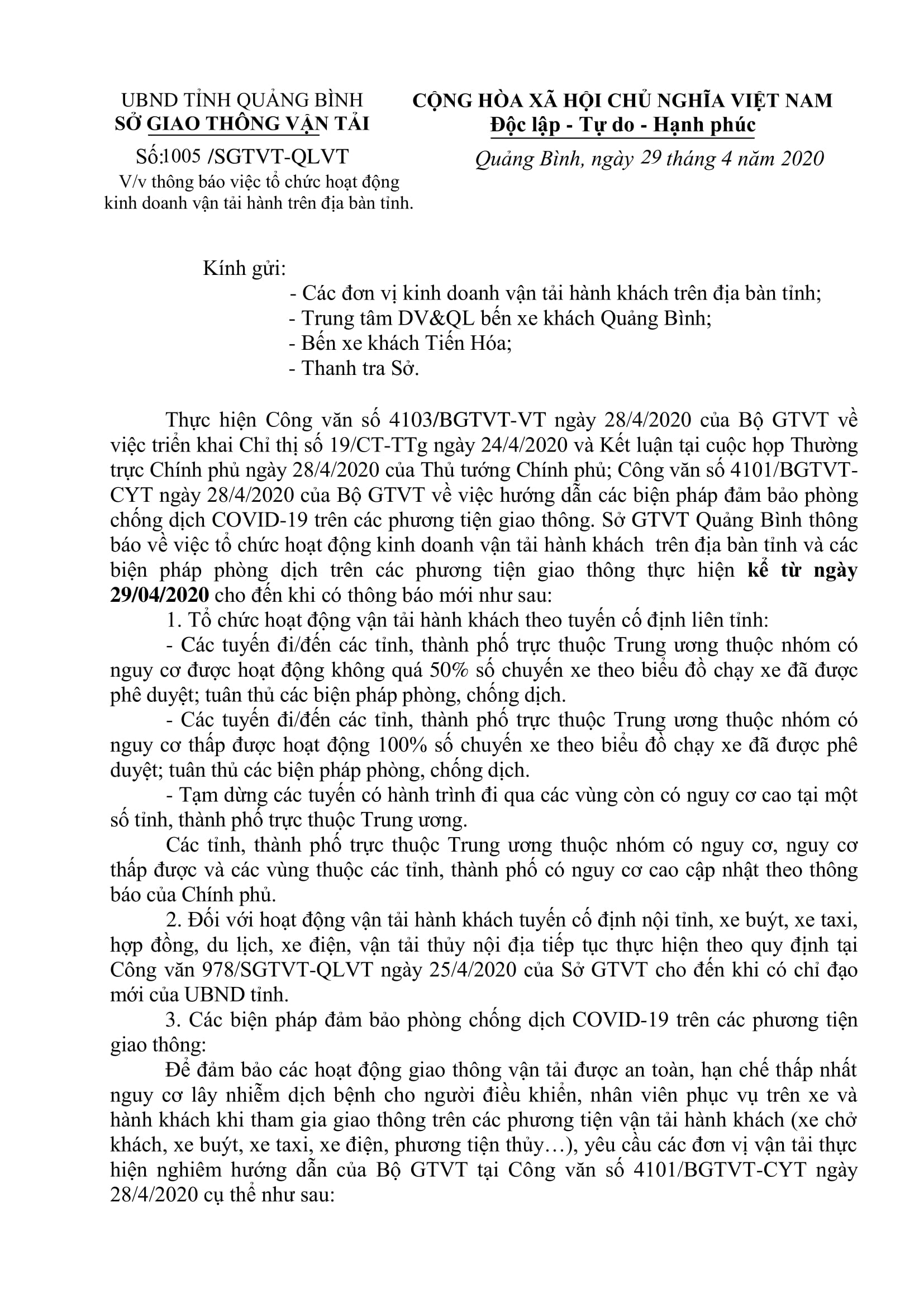 Thông báo tổ chức hoạt động kinh doanh vận tải hành khách theo tuyến cố định liên tỉnh kể từ 29/4/2020