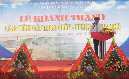 Phát biểu tại buổi lễ, Chủ tịch UBND tỉnh nhấn mạnh, việc khánh thành đưa cầu Trung Quán đi vào hoạt động tạo điều kiện thông thương, phát triển kinh tế cho miền Tây của hai huyện Quảng Ninh và Lệ Thủy. Trong tương lai gần, dự án sẽ được kết nối với đường Hồ Chí Minh và Quốc lộ 9B tại ngã tư Nam Long, tạo thành mạng lưới giao thông liên hoàn, kết nối các huyện phía Nam của tỉnh với nước bạn Lào qua cửa khẩu Chút Mút - Lả Vơn, là động lực thúc đẩy phát triển kinh tế, văn hóa, xã hội của khu vực nói riêng và của tỉnh Quảng Bình nói chung. Chủ tịch UBND tỉnh nhấn mạnh, các cấp ngành chức năng và chính quyền địa phương cần phối hợp chặt chẽ trong việc quản lý, bảo vệ và thực hiện khai thác có hiệu quả công trình trong tiến trình thúc đẩy phát triển kinh tế, văn hóa, xã hội của các địa phương.