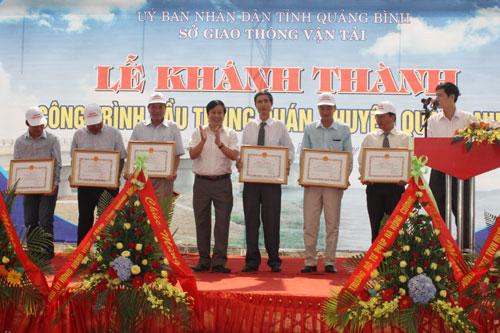 Nhân dịp này, Chủ tịch UBND tỉnh tặng Bằng khen cho 03 tập thể và 04 cá nhân đã hoàn thành tốt nhiệm vụ trong thực hiện xây dựng dự án cầu Trung Quán.