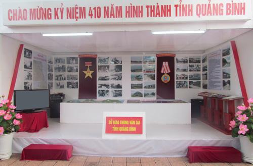 Nhân kỷ niệm 410 năm hình thành tỉnh Quảng Bình, sáng ngày 26/4/2014, tại khuôn viên trụ sở Bảo tàng tỉnh Quảng Bình đã diễn ra triển lãm thành tựu kinh tế-xã hội. Tham gia triển lãm có 35 đơn vị đến từ các Sở, ban, ngành, địa phương, doanh nghiệp với 66 gian. Tham gia 02 gian triển lãm, Sở GTVT đã giới thiệu những thành tựu nổi bật của đơn vị mình trong công cuộc kháng chiến bảo vệ đất nước cũng như trong sự nghiệp phát triển kinh tế-xã hội, an ninh, quốc phòng qua các thời kỳ và định hướng phát triển của Ngành trong thời gian tới với nhiều hình ảnh, tài liệu, sách, phóng sự và mô hình về các dự án công trình trọng điểm, góp phần tích cực thực hiện nhiệm vụ đột phá phát triển kết cấu hạ tầng, tạo động lực phát triển kinh tế xã hội của tỉnh nhà.
