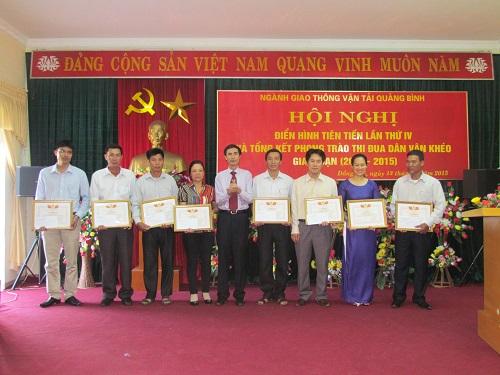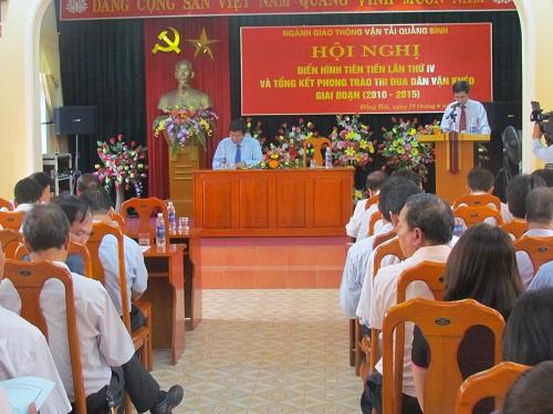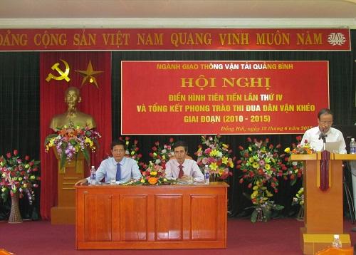 Chiều 13/6/2015, Sở Giao thông vận tải tỉnh Quảng Bình đã tổ chức Hội nghị điển hình tiên tiến 5 năm lần thứ IV và Tổng kết phong trào thi đua “Dân vận khéo” giai đoạn 2010-2015. Đến tham dự và chỉ đạo Hội nghị có đ/c Trần Văn Tuân Ủy viên Ban Thường vụ Tỉnh ủy, Phó Chủ tịch UBND tỉnh. Đại diện Lãnh đạo một số ban, ngành, đoàn thể cấp tỉnh. Lãnh đạo Sở, BCH Đảng bộ, các phòng ban, đơn vị trong ngành GTVT và các tập thể, cá nhân điển hình tiên tiến trong ngành.