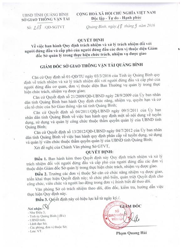 Tải Quyết định 218/QĐ-SGTVT ngày 18/3/2016 của Sở Giao thông vận tải Quảng Bình tại đây: 218/QĐ-SGTVT