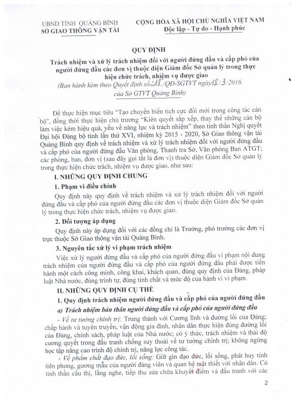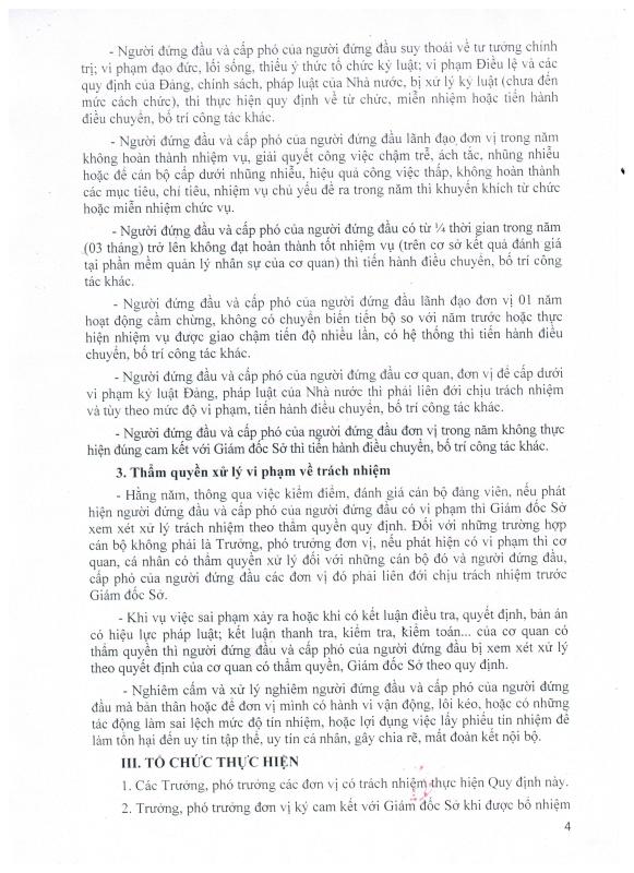 Về việc ban hành Quy định Trách nhiệm và xử lý trách nhiệm đối với người đứng đầu và cấp phó của người đứng đầu các đơn vị thuộc diện Giám đốc Sở quản lý trong thực hiện chức trách, nhiệm vụ được giao