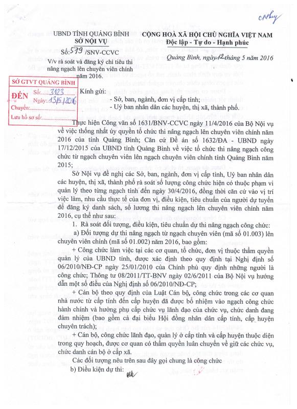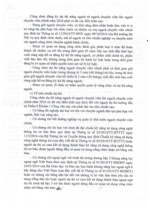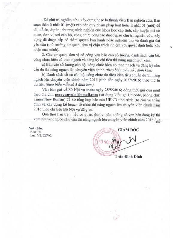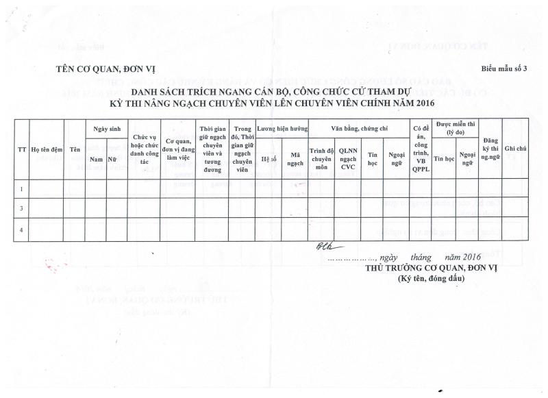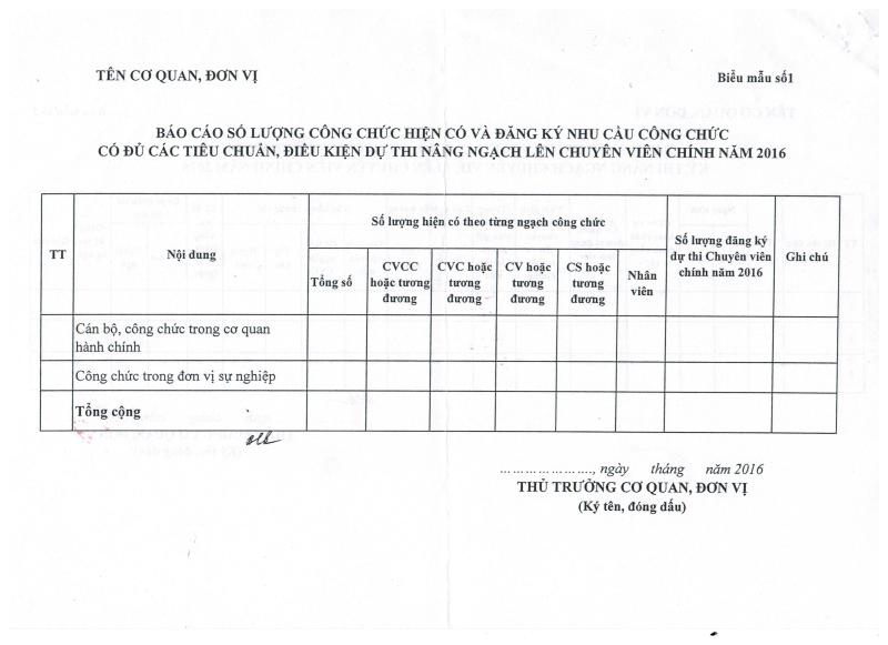 V/v Rà soát và đăng ký chỉ tiêu thi nâng ngạch lên chuyên viên chính năm 2016