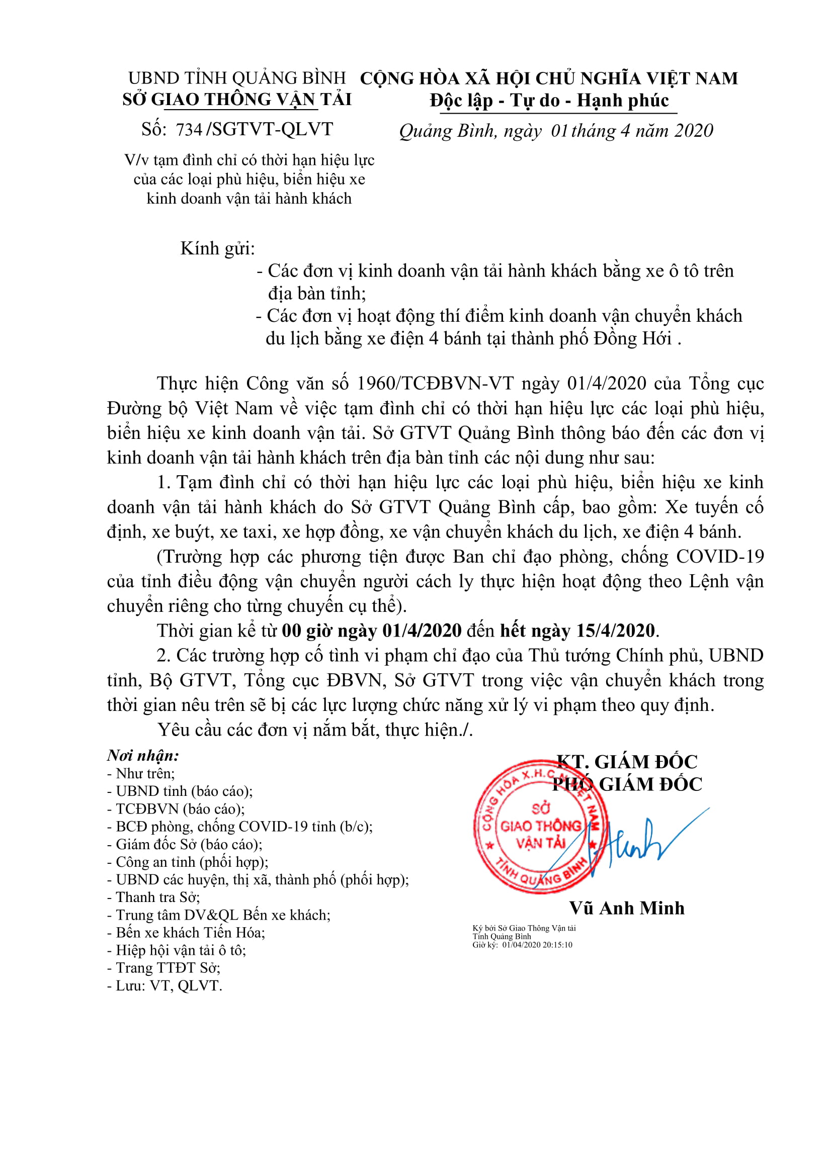 - Thực hiện tiếp nhận hồ sơ và trả kết quả đối với các thủ tục hành chính thuộc thẩm quyền giải quyết của Sở Giao thông vận tải Quảng Bình trong thời gian từ 01/4/2020 - 15/4/2020 (01/04/2020)