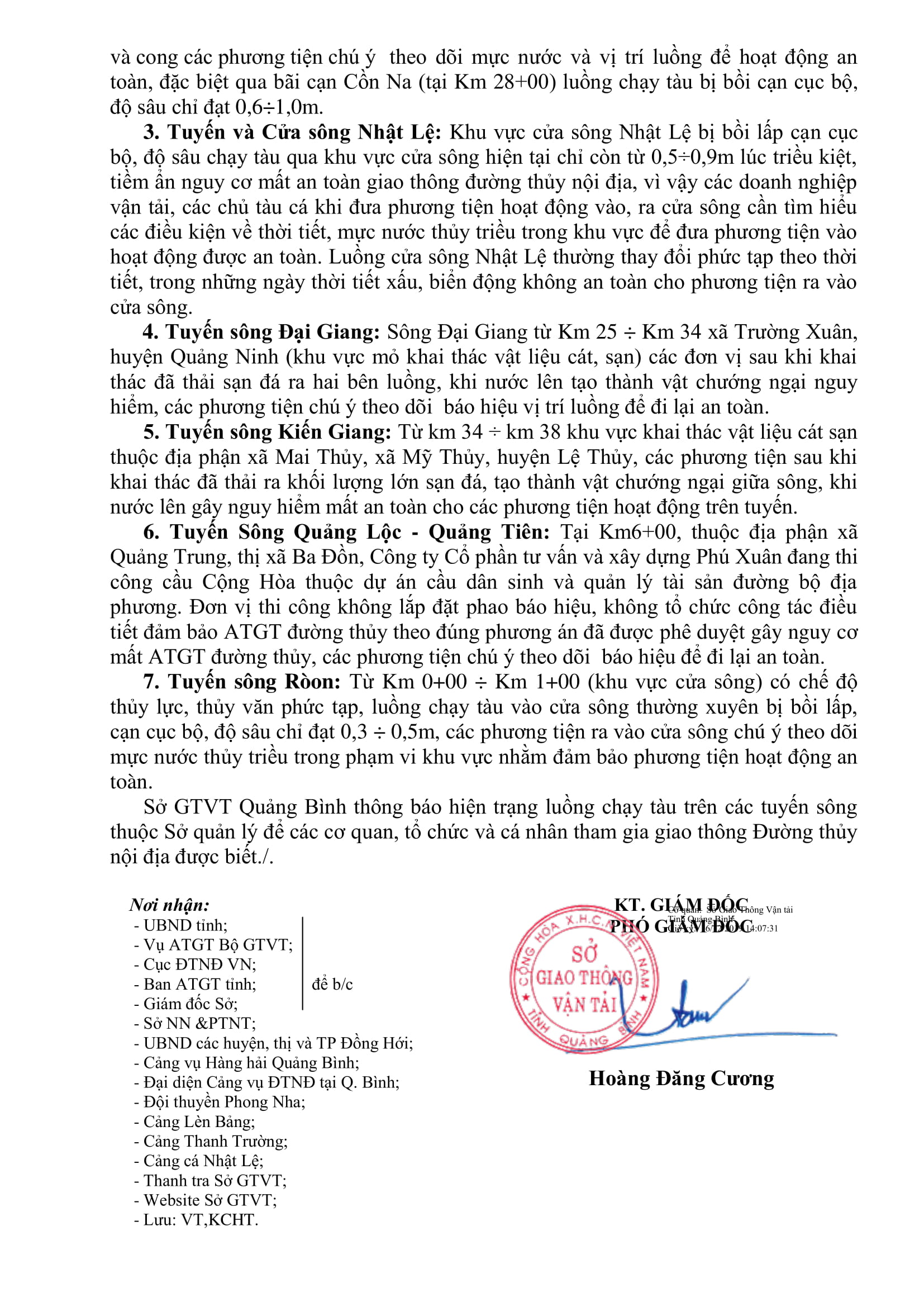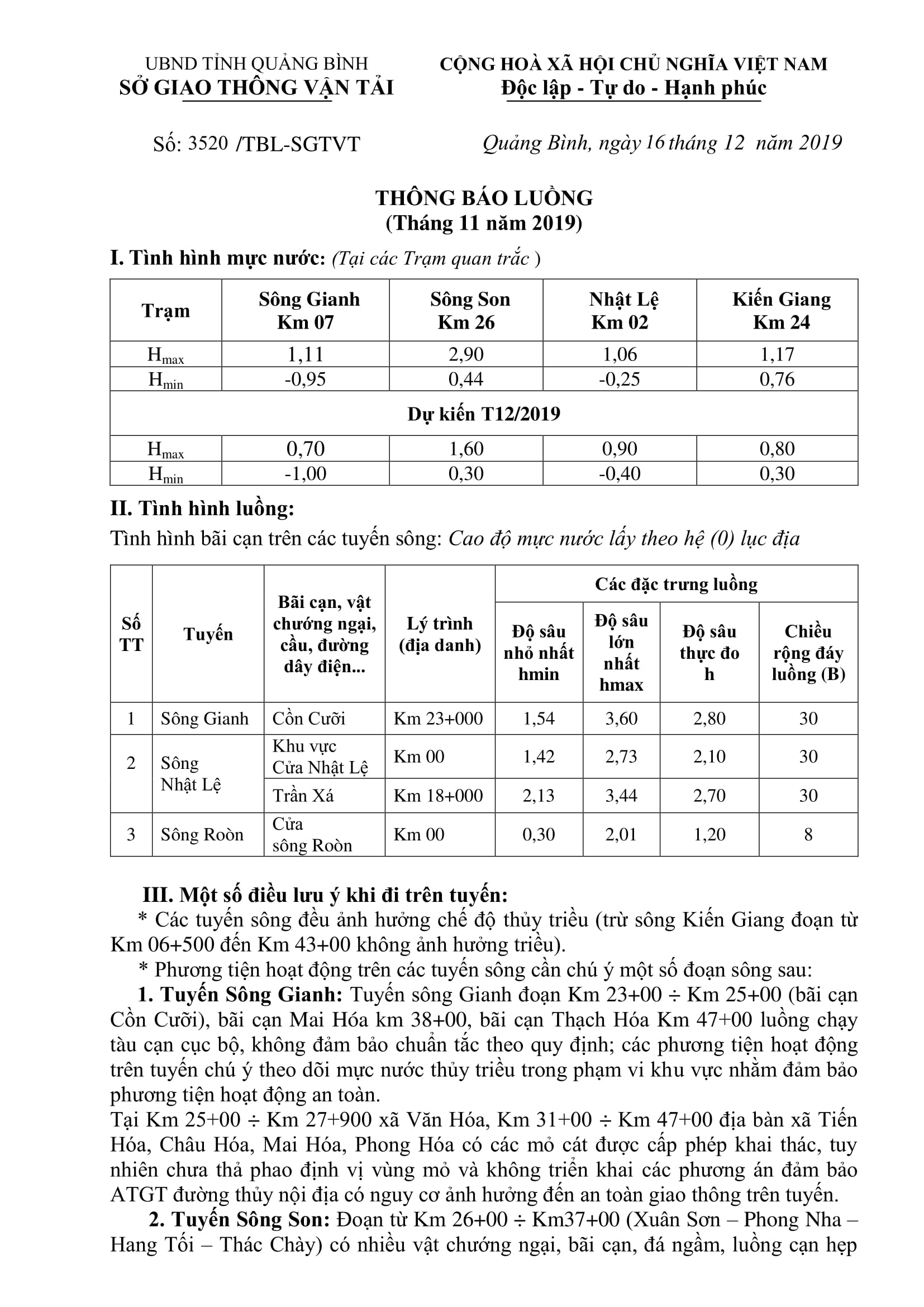 Thông báo luồng Đường thủy nội địa tháng 11/2019