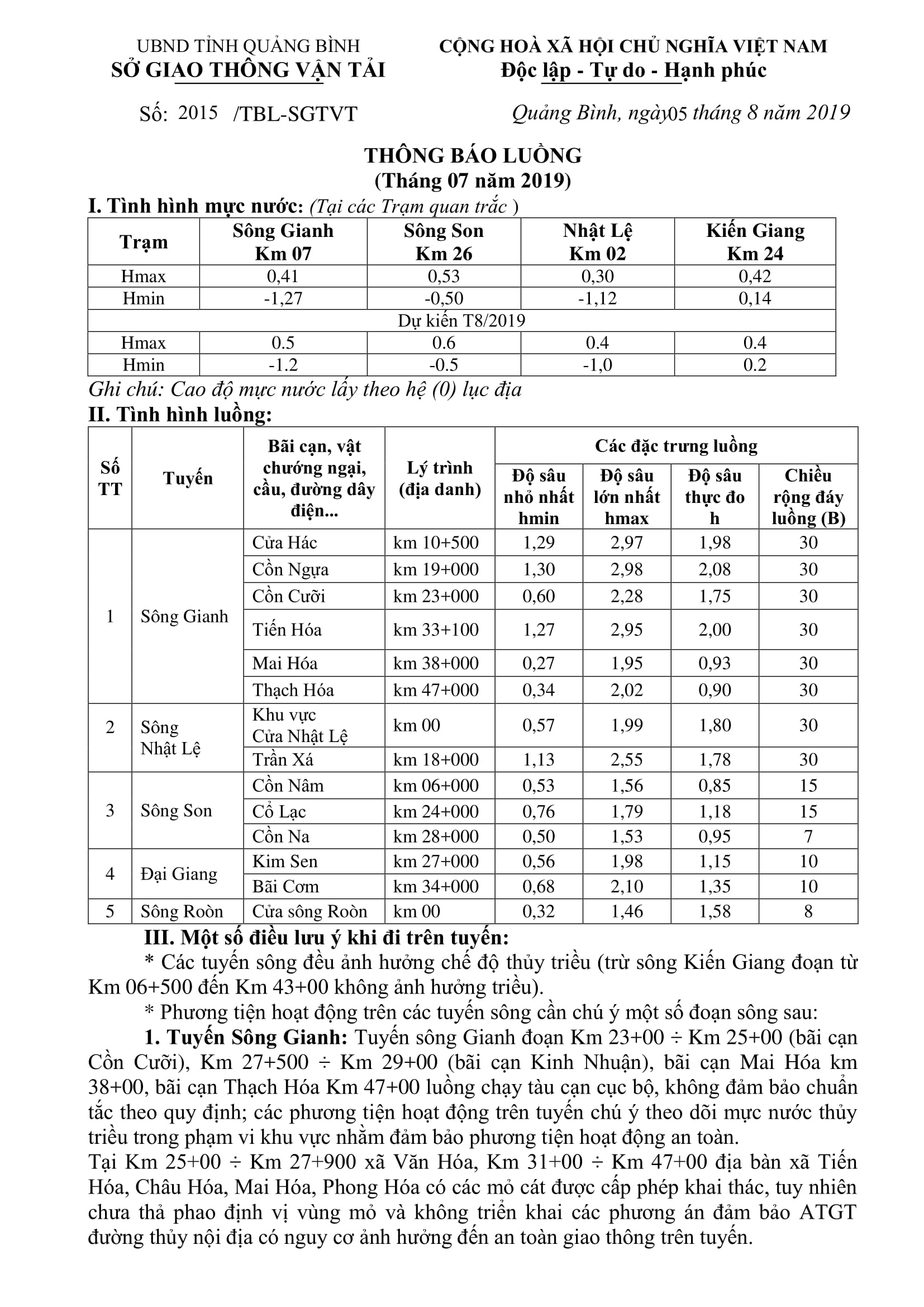 - Thông báo luồng Đường thủy nội địa tháng 06/2019 (07/08/2019)