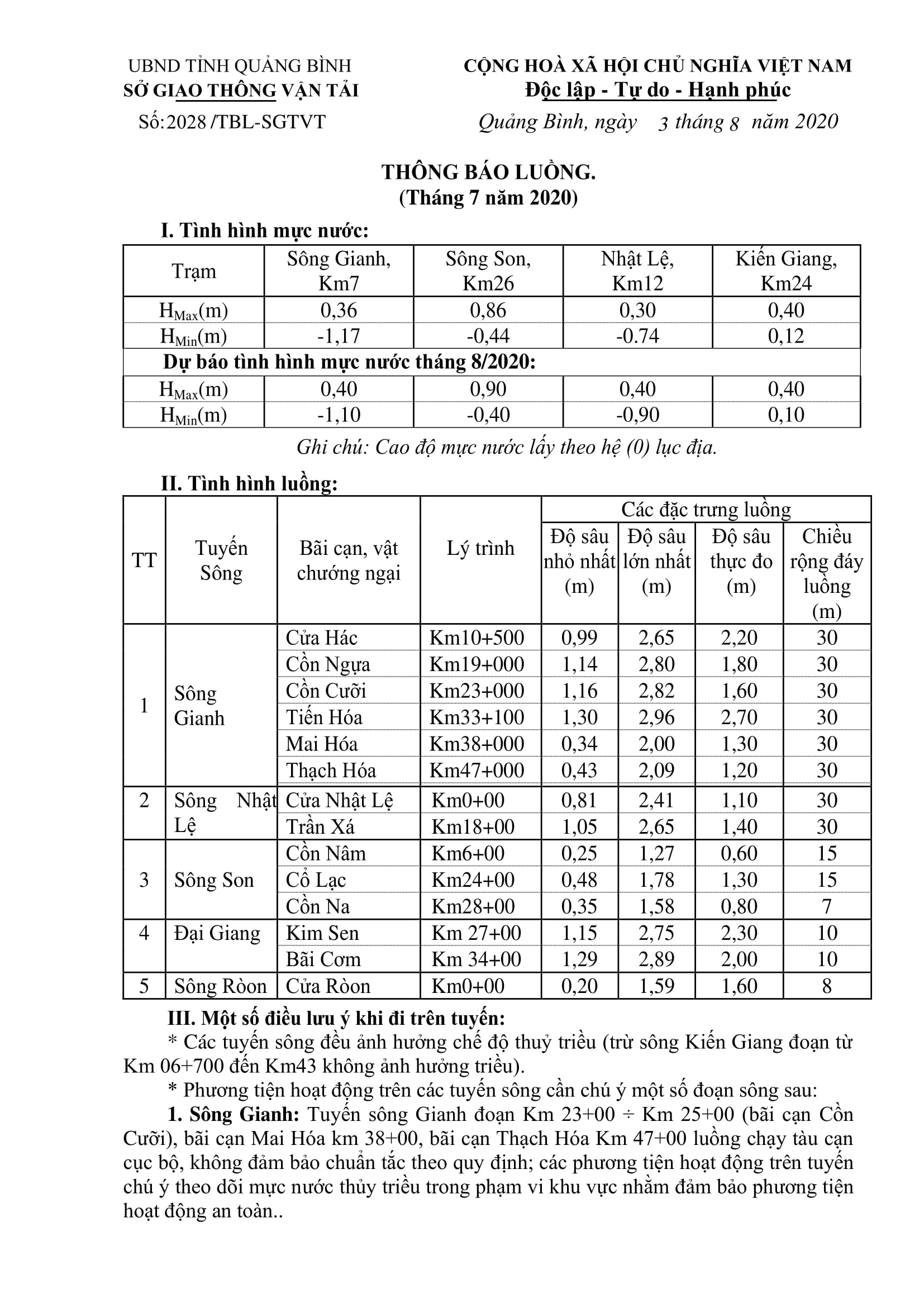 Thông báo luồng Đường thủy nội địa tháng 07/2020
