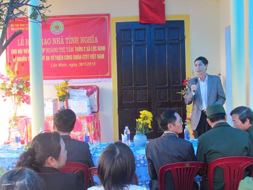 Lễ bàn giao Nhà tình nghĩa cho cựu TNXP Hoàng Thị Tâm được tổ chức vào dịp kỷ niệm 85 năm thành lập Đảng cộng sản Việt Nam (03/02/1930-03/02/2015); đây là một trong những hoạt động Chào mừng kỷ niệm 70 năm ngày truyền thống Giao thông vận tải (28/8/1945-28/8/2015); được diễn ra trong không khí trang trọng và ấm áp tình cảm đồng chí, đồng đội./.