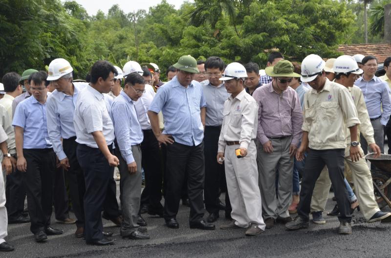 Bộ trưởng Bộ Giao thông vận tải Đinh La Thăng kiểm tra gói thầu số 14 Dự án mở rộng Quốc lộ 1 tại Quảng Bình