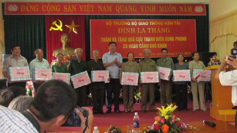 Bộ trưởng Bộ Giao thông vận tải Đinh La Thăng thăm và tặng quà Cựu Thanh niên xung phong có hoàn cảnh khó khăn