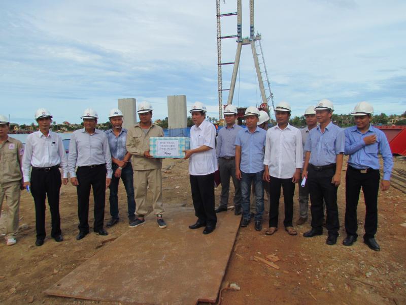 Dự án Cầu Nhật Lệ 2: Đồng chí Bí thư Tỉnh ủy thăm, tặng quà động viên cán bộ, công nhân thi công công trình trong dịp lễ Quốc khánh 02/9