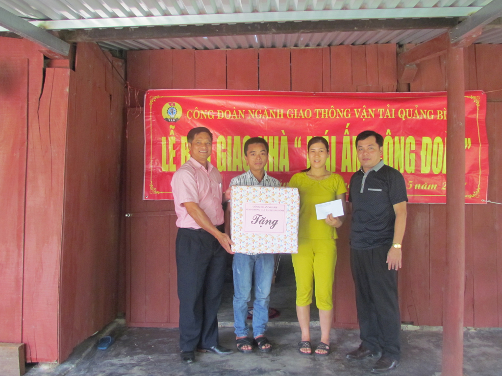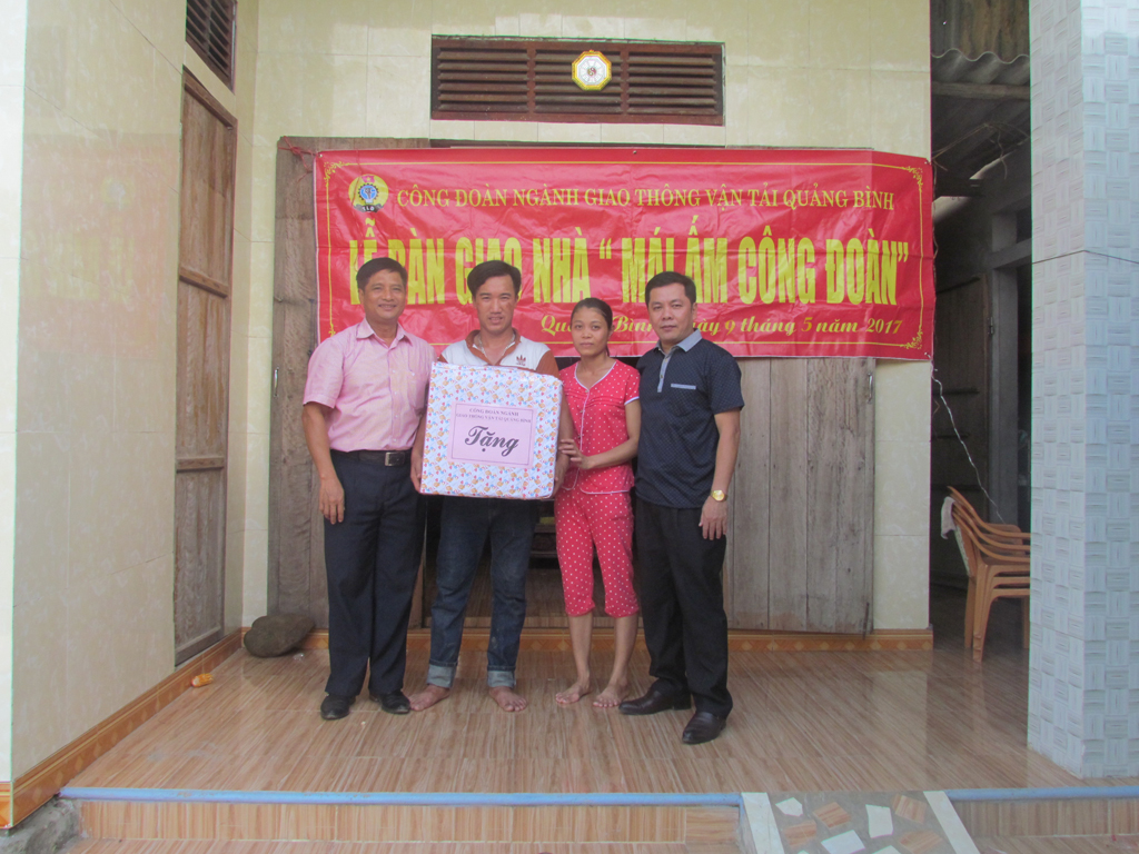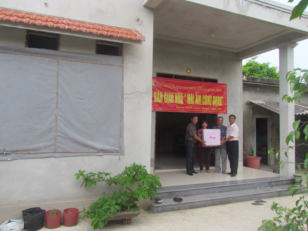 Hưởng ứng “Tháng Công nhân năm 2017" với Chủ đề Vì đoàn viên công đoàn có hoàn cảnh khó khăn" và thực hiện Kế hoạch số 50/KH-TLĐ, ngày 25/11/2016 của Tổng Liên đoàn Lao động Việt Nam về tổ chức Tháng Công nhân năm 2017, nhằm chăm lo tốt hơn đời sống vật chất, tinh thần cho đoàn viên công đoàn, thiết thực chào mừng Đại hội Công đoàn các cấp tiến tới Đại hội Công đoàn tỉnh Quảng Bình lần thứ XVIII, Đại hội Công đoàn Việt Nam lần thứ XII. Công đoàn ngành Giao thông vận tải Quảng Bình được Quỹ Xã hội Công đoàn tỉnh Quảng Bình hỗ trợ cho 04 nhà Mái ấm công đoàn, với số tiền 70 triệu đồng để xây dựng và sửa chữa nhà ở cho đoàn viên.