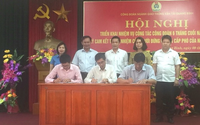 Chủ tịch và Phó Chủ tịch các CĐCS trực thuộc ký cam kết trách nhiệm với Thường vụ CĐ ngành GTVT Quảng Bình.