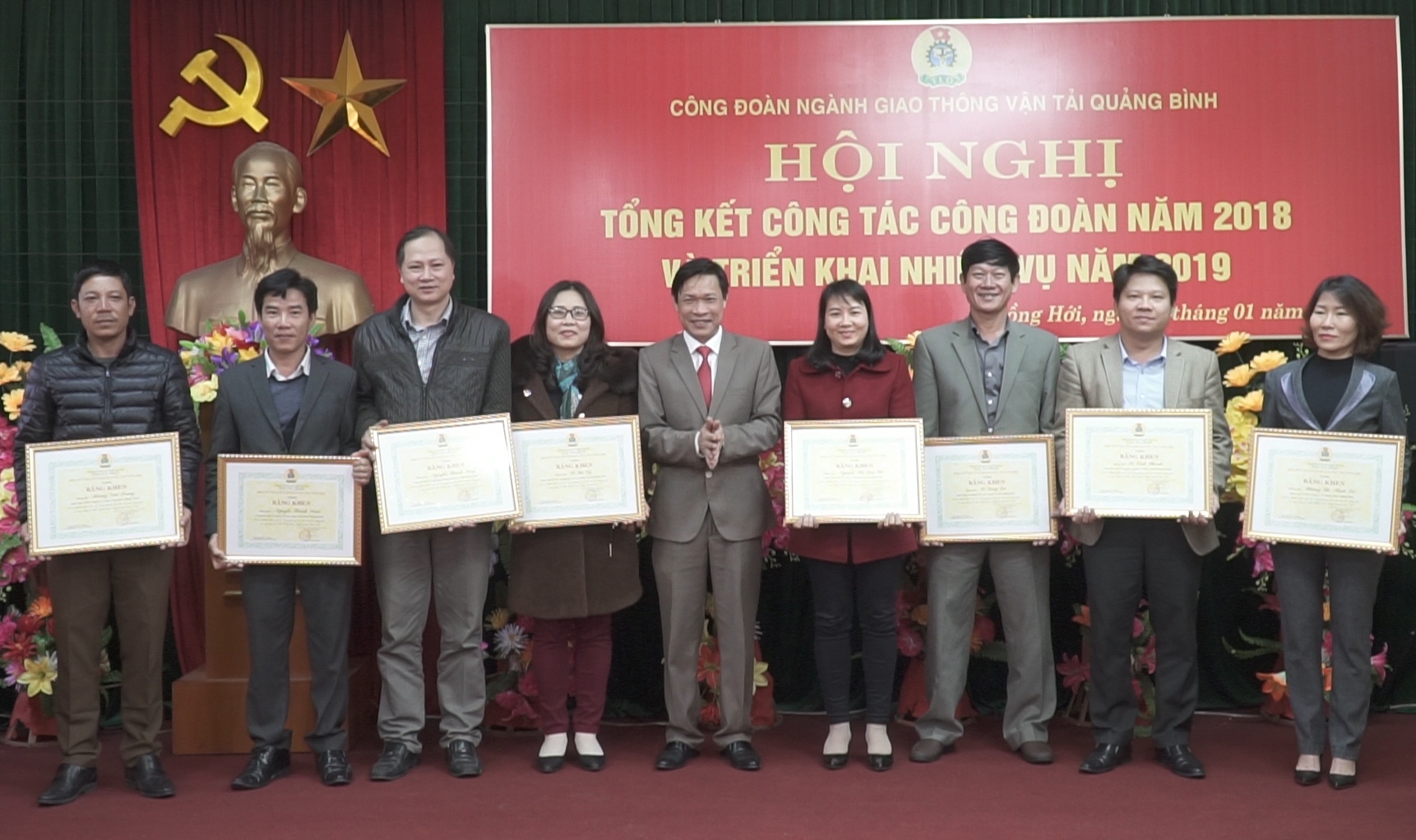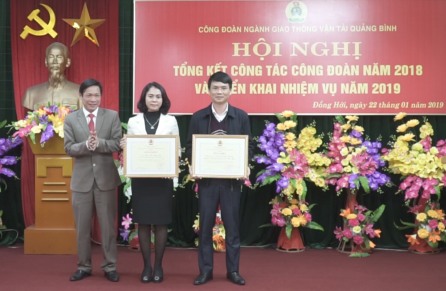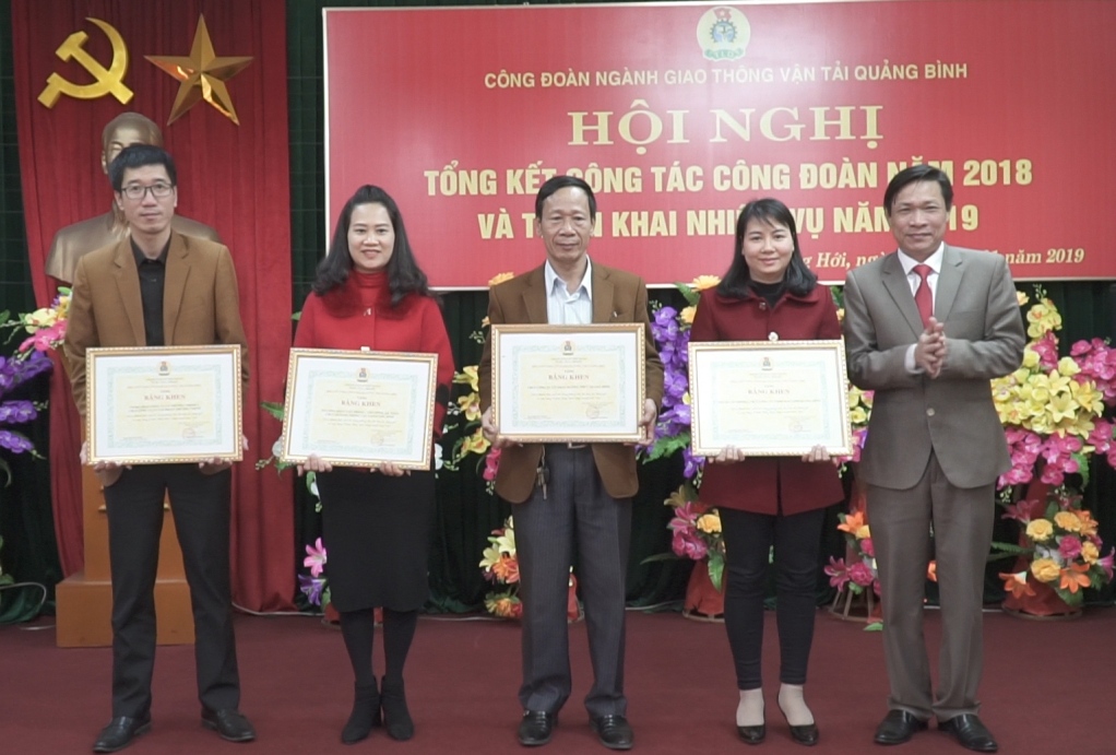 Tại hội nghị, có 01 tập thể và 01 cá nhân Tổng Liên đoàn Lao động Việt Nam tặng bằng khen; 04 tập thể và 09 cá nhân được tặng Bằng khen của Liên đoàn Lao động tỉnh; 02 tập thể và 03 cá nhân được tặng Bằng khen của Công đoàn Giao thông vận tải Việt Nam; 12 tập thể và 107 cá nhân được tặng Giấy khen của Công đoàn ngành Giao thông vận tải Quảng Bình; 02 cá nhân được tặng bằng khen chuyên đề của Chủ tịch UBND tỉnh.