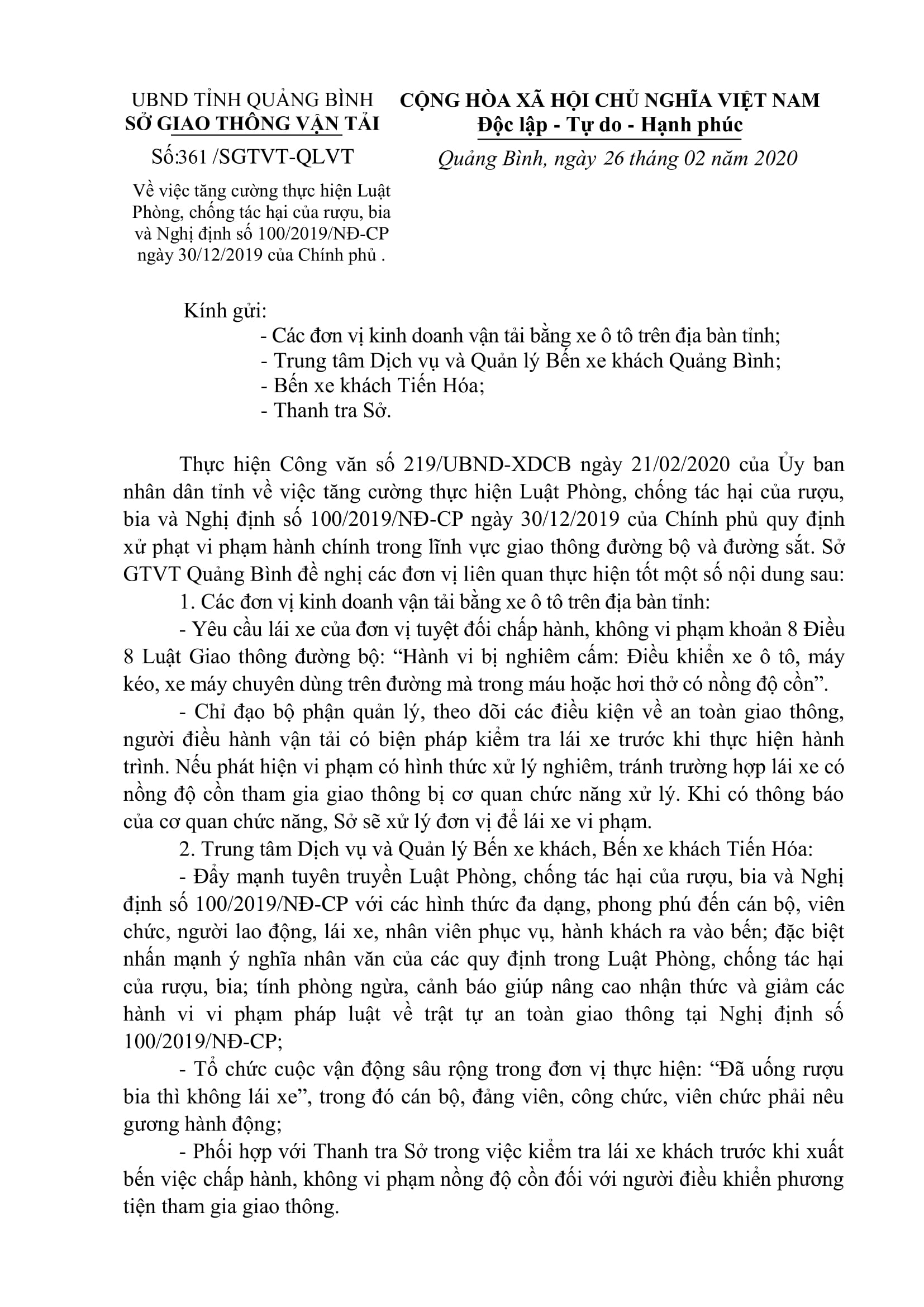- Triển khai thực hiện Nghị định 10/2020/NĐ-CP ngày 17/01/2020 của Chính phủ quy định về kinh doanh và điều kiện kinh doanh vận tải bằng xe ô tô (21/02/2020)