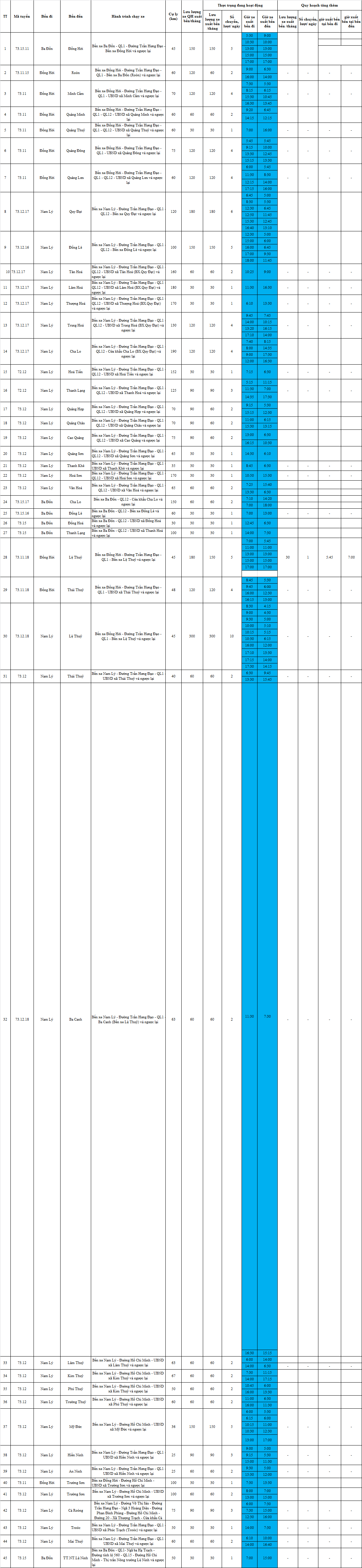 BIỂU ĐỒ CHẠY XE CÁC TUYẾN NỘI TỈNH