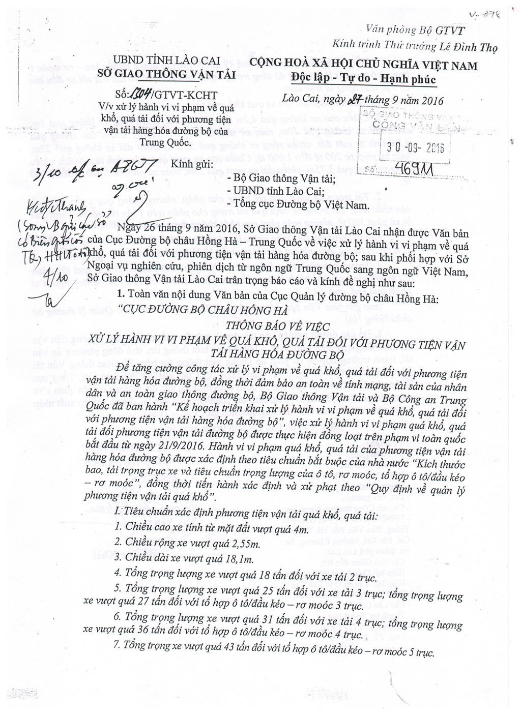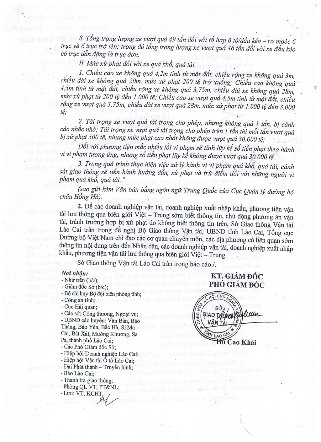 Thông tin về Kế hoạch xử lý hành vi chở quá khổ, quá tải đối với các phương tiện vận tải hàng hóa đường bộ của Trung Quốc