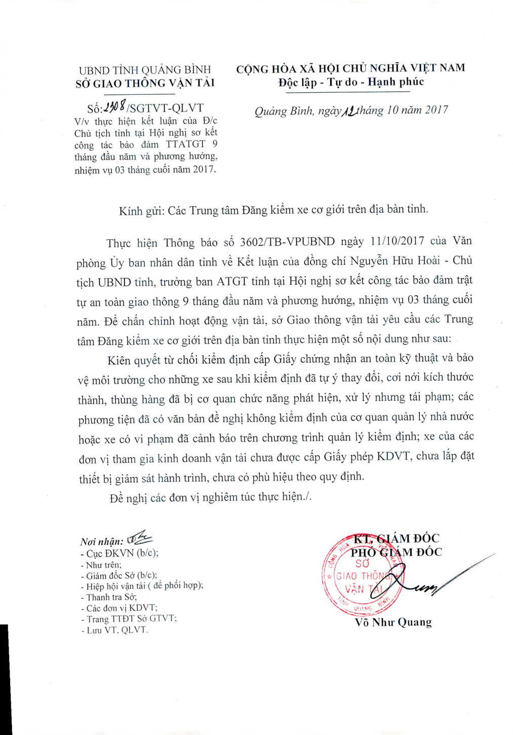 Thực hiện kết luận của Đồng chí Chủ tịch UBND tỉnh tại Hội nghị sơ kết công tác bảo đảm TTATGT 9 tháng đầu năm và phương hướng, nhiệm vụ 03 tháng cuối năm 2017