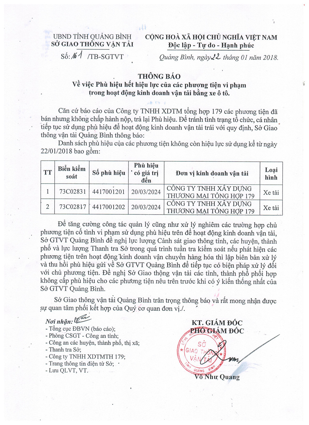 - Thông báo về việc hủy Giấy phép lái xe mất xin cấp lại (Tháng 12/2017) (16/01/2018)