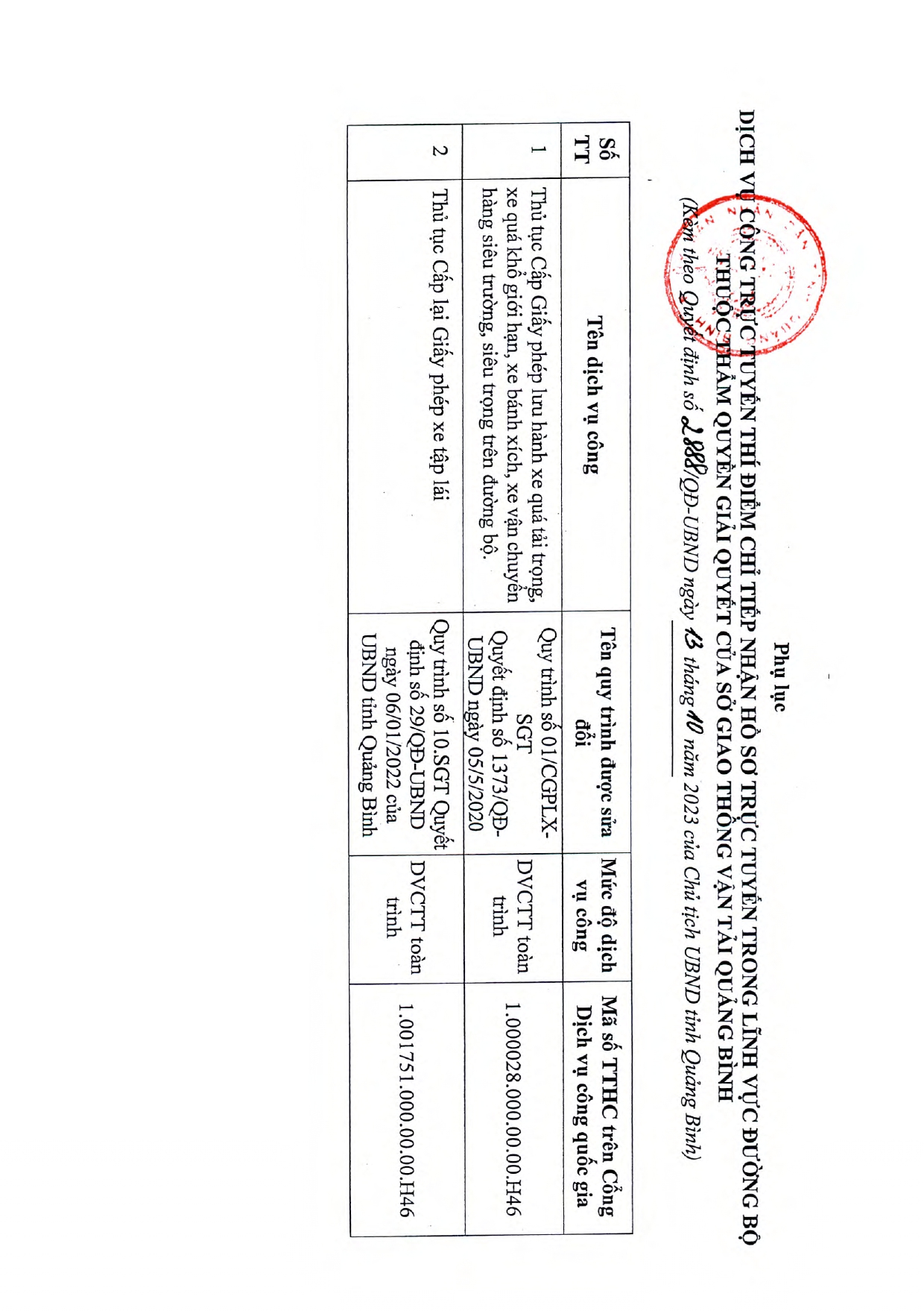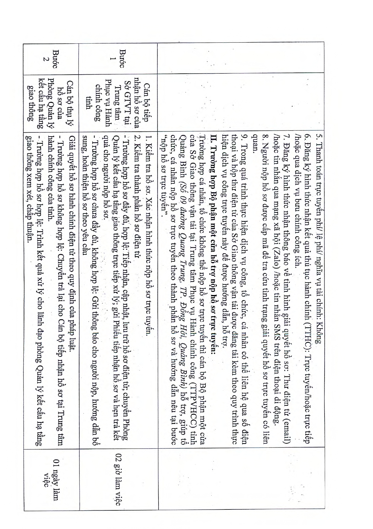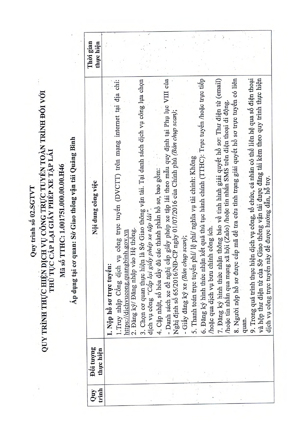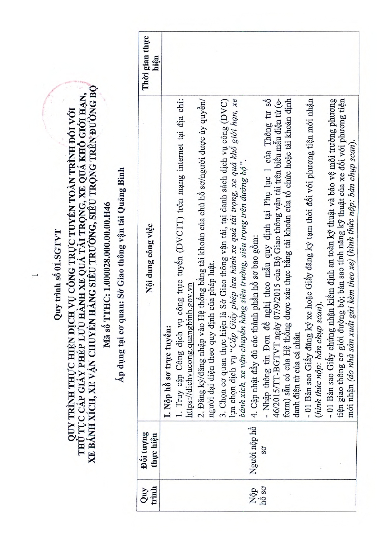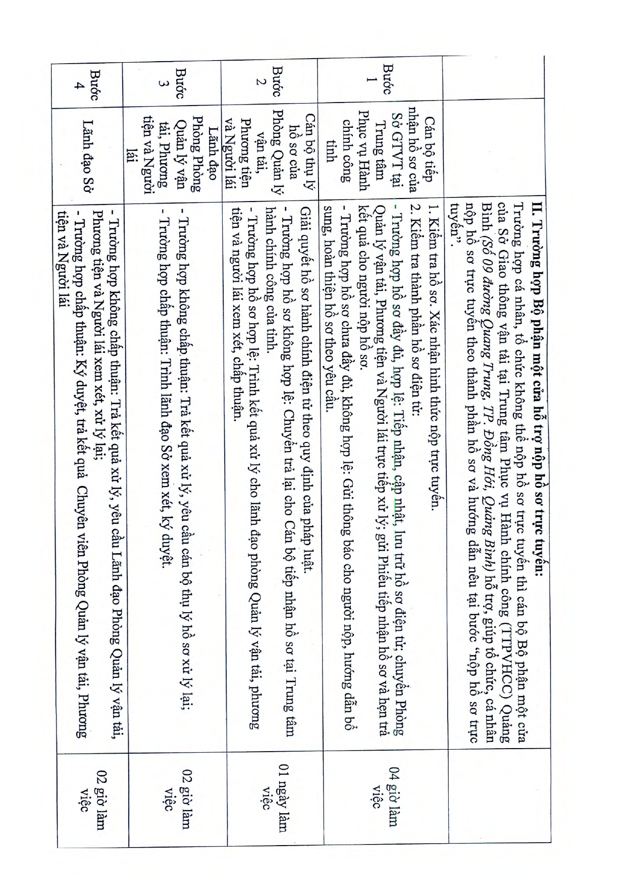 Phê duyệt quy trình thực hiện dịch vụ công trực tuyến thí điểm tiếp nhận hồ sơ hoàn toàn qua trực tuyến trong lĩnh vực Đường bộ thuộc thẩm quyền giải quyết của Sở Giao thông vận tải Quảng Bình