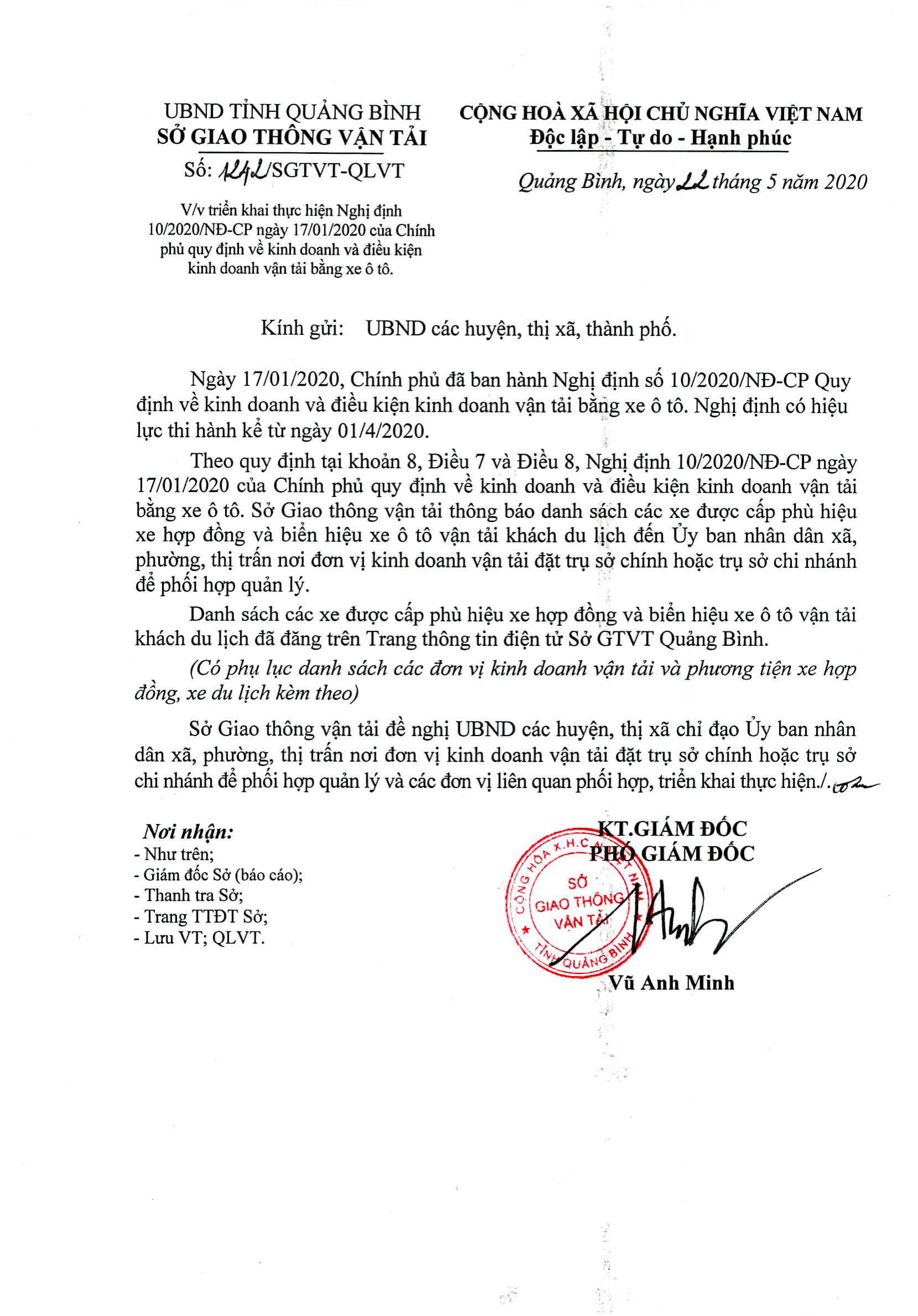 Triển khai thực hiện Nghị định 10/2020/NĐ-CP ngày 17/01/2020 của Chính phủ quy định về kinh doanh và điều kiện kinh doanh vận tải bằng xe ô tô