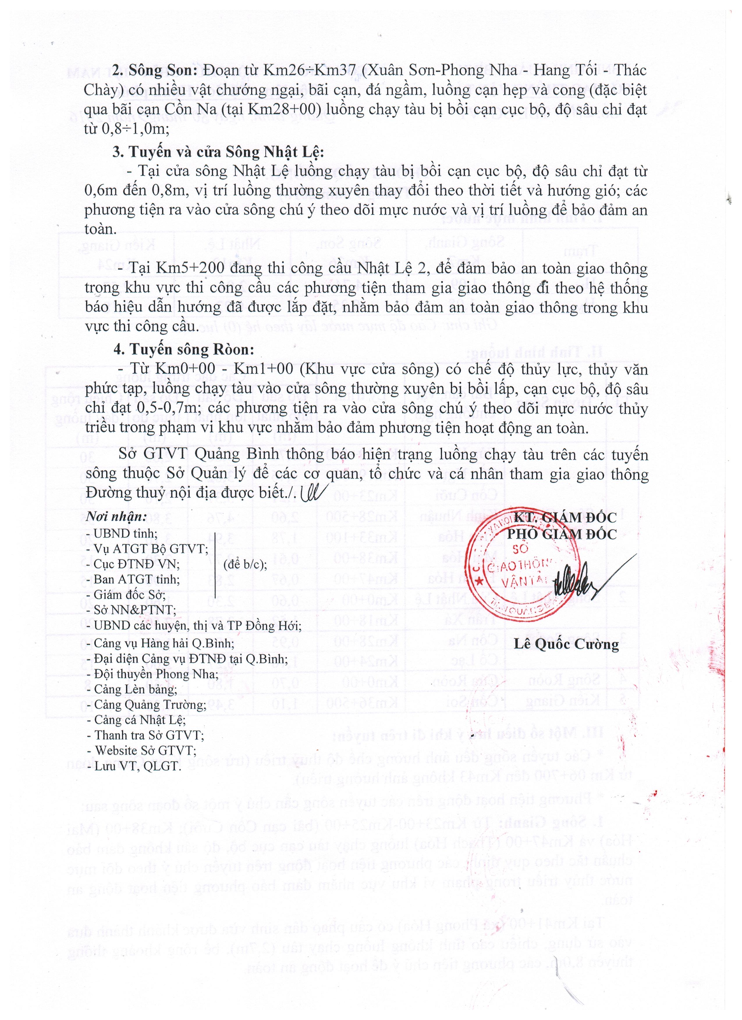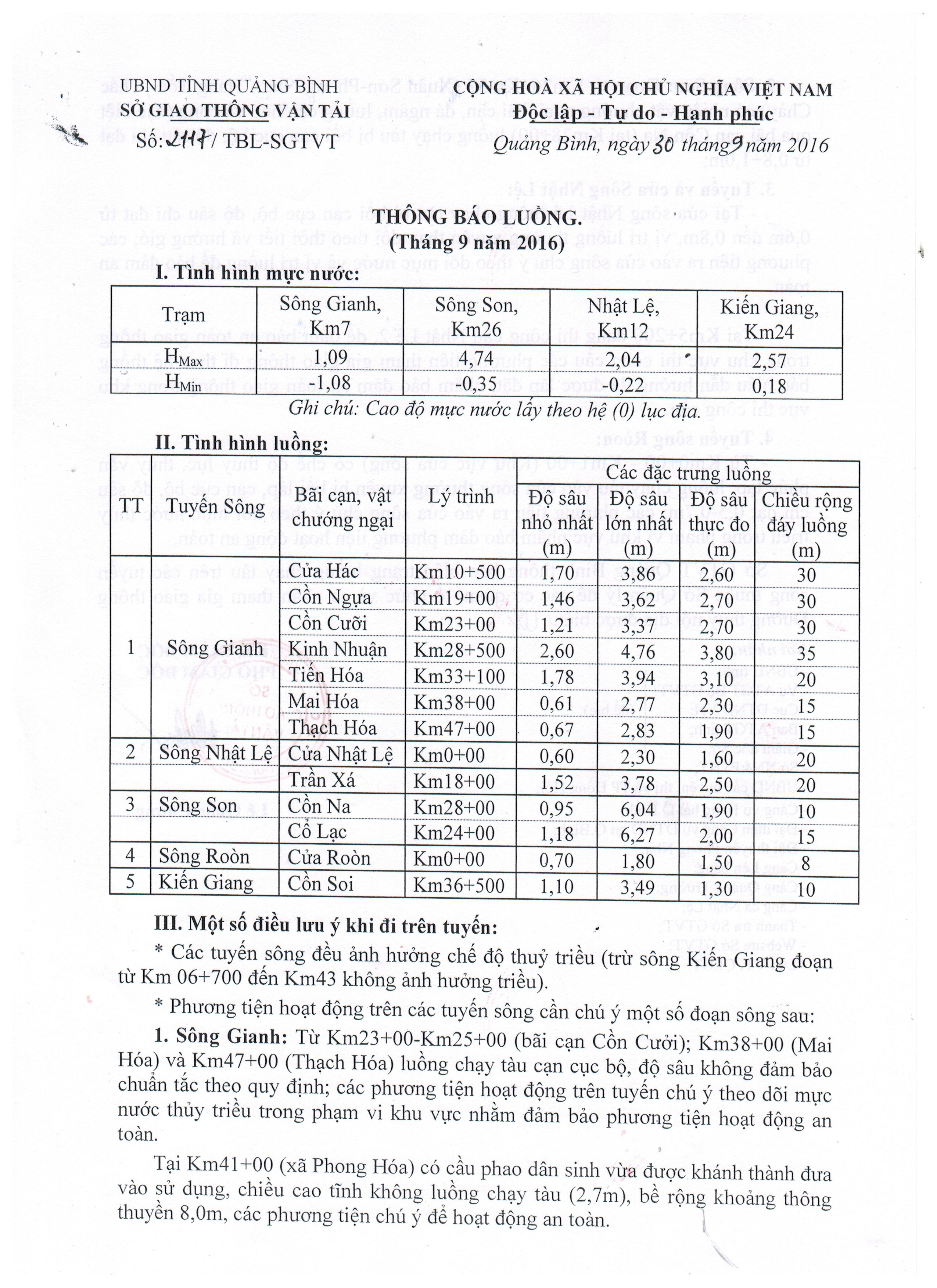 Thông báo luồng Đường thủy nội địa tháng 09/2016